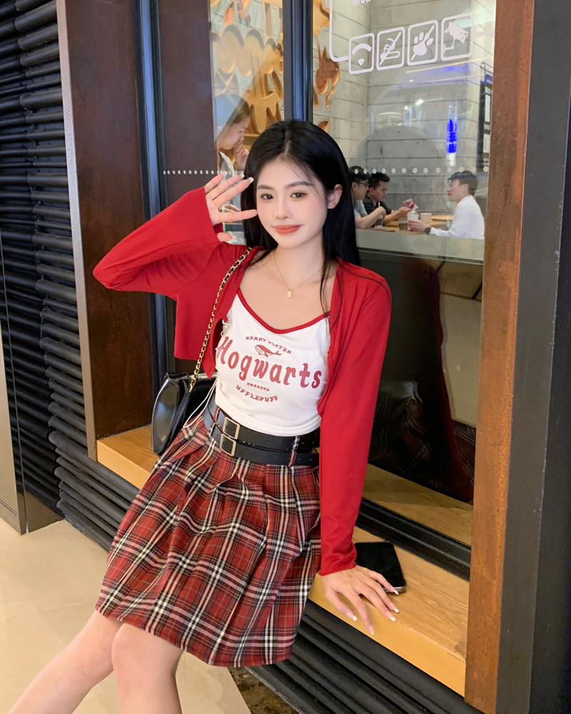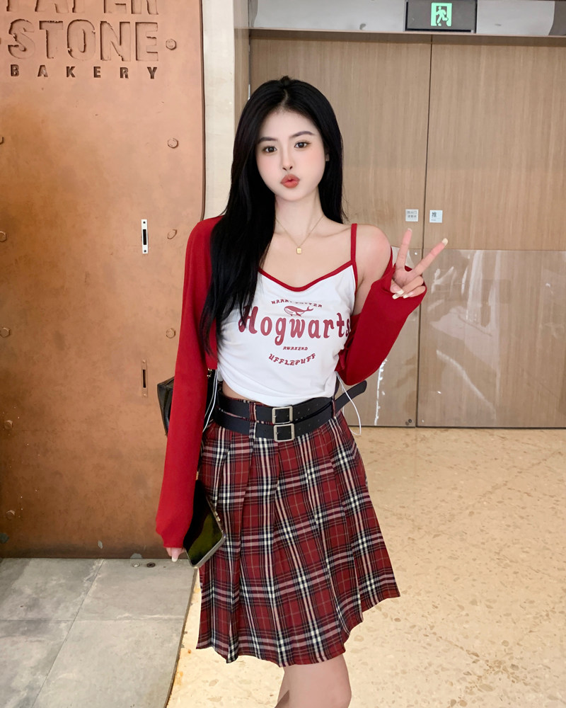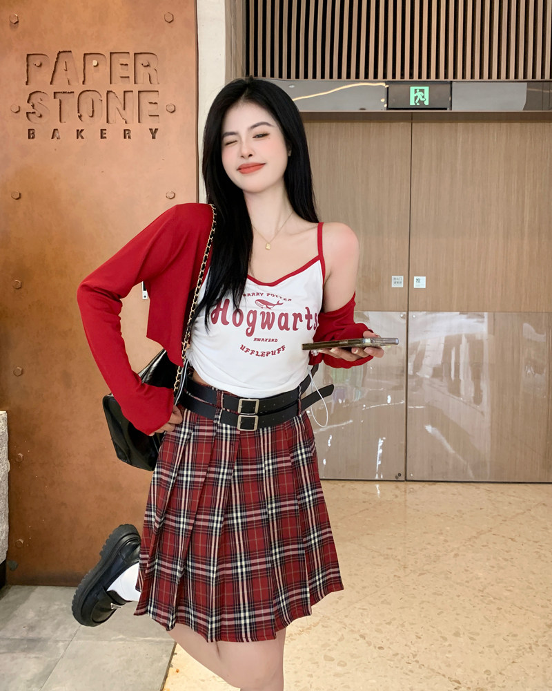 夏季女士大码红格子百褶裙高腰显瘦学院风a字短裙防走光JK半身裙