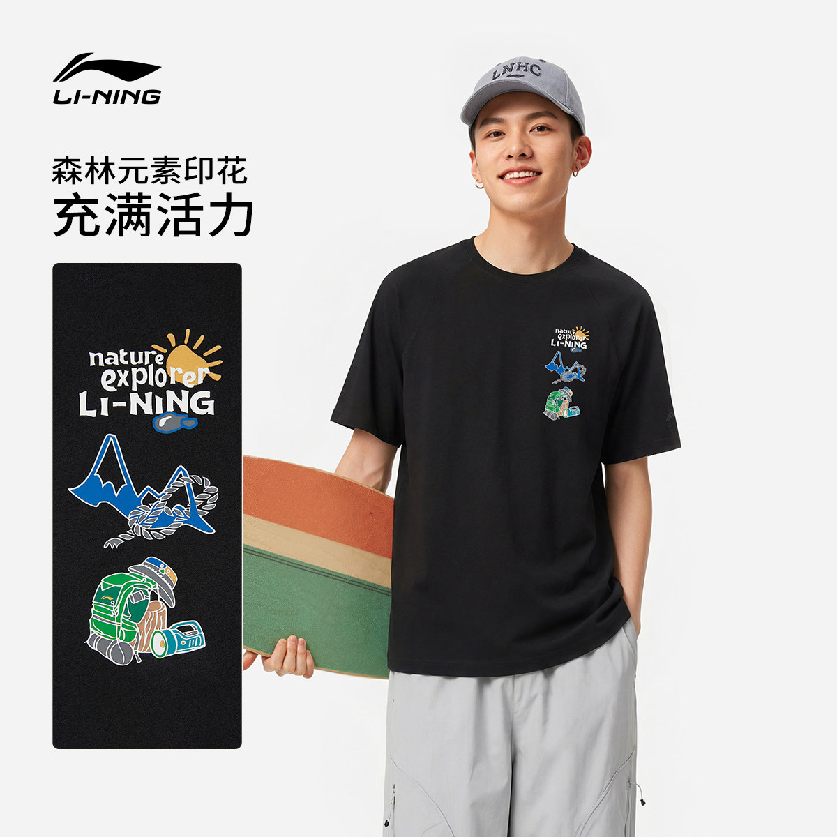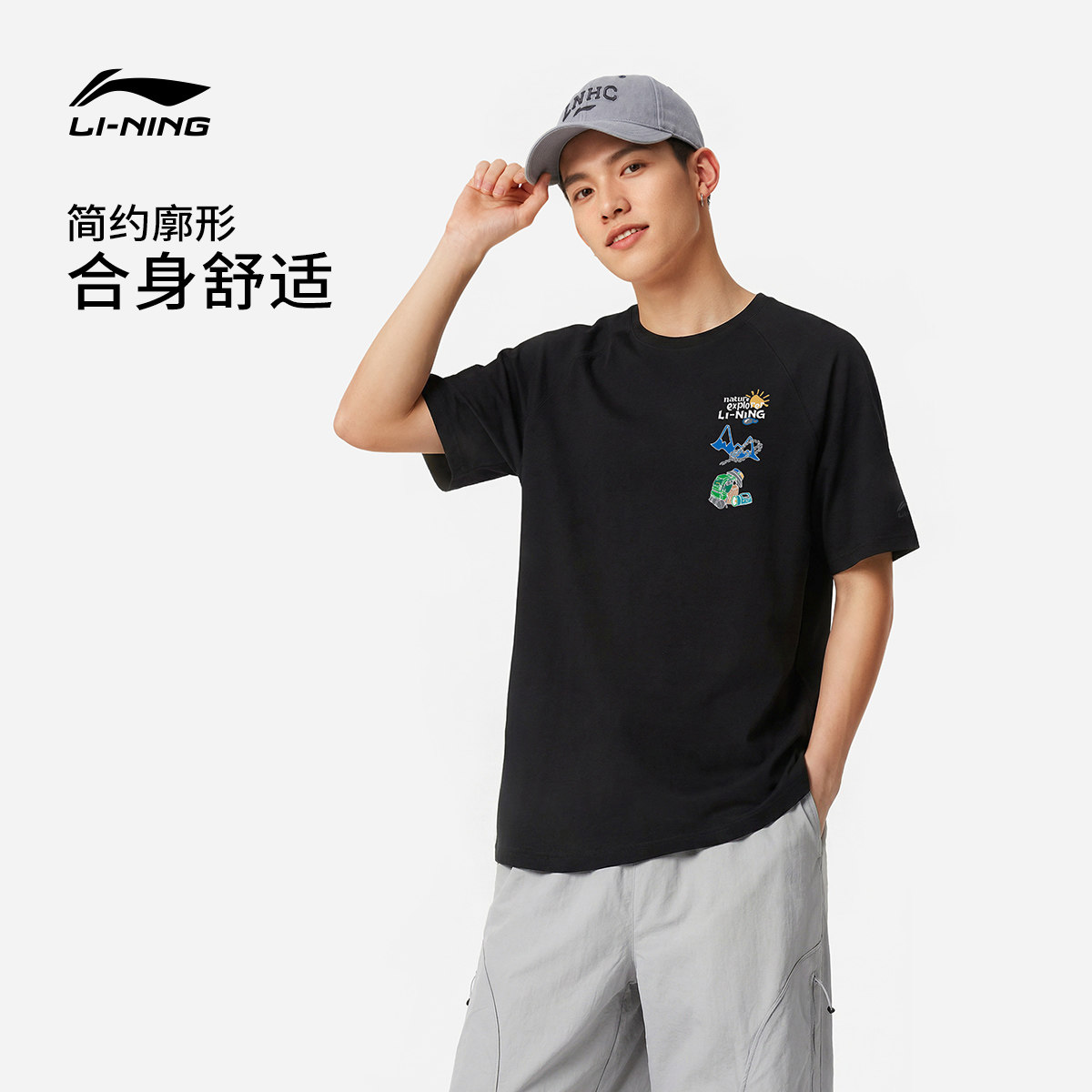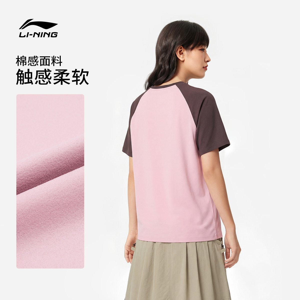李宁户外短袖男士春夏2026新款情侣圆领透气针织印花运动T恤女士