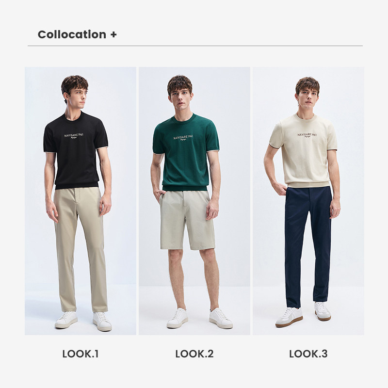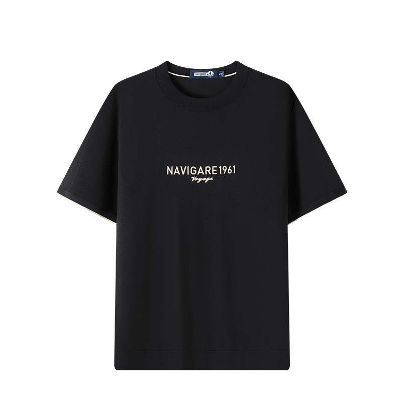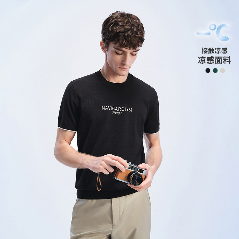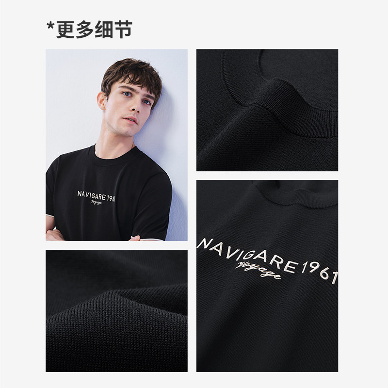 [冰丝]Navigare意大利小帆船黑色夏季圆领体恤男短袖针织T恤