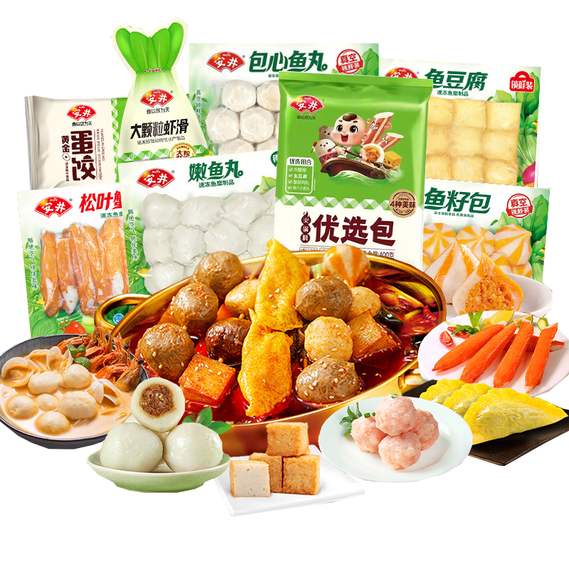 安井火锅丸子虾滑鱼丸福袋虾球撒尿牛肉丸鱼籽包鱼豆腐关东煮食材