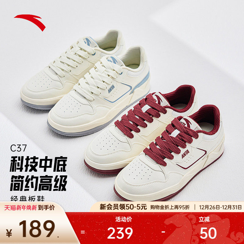 安踏C37板鞋丨软底舒适撞色经典板鞋男女同款2025冬季新款小白鞋