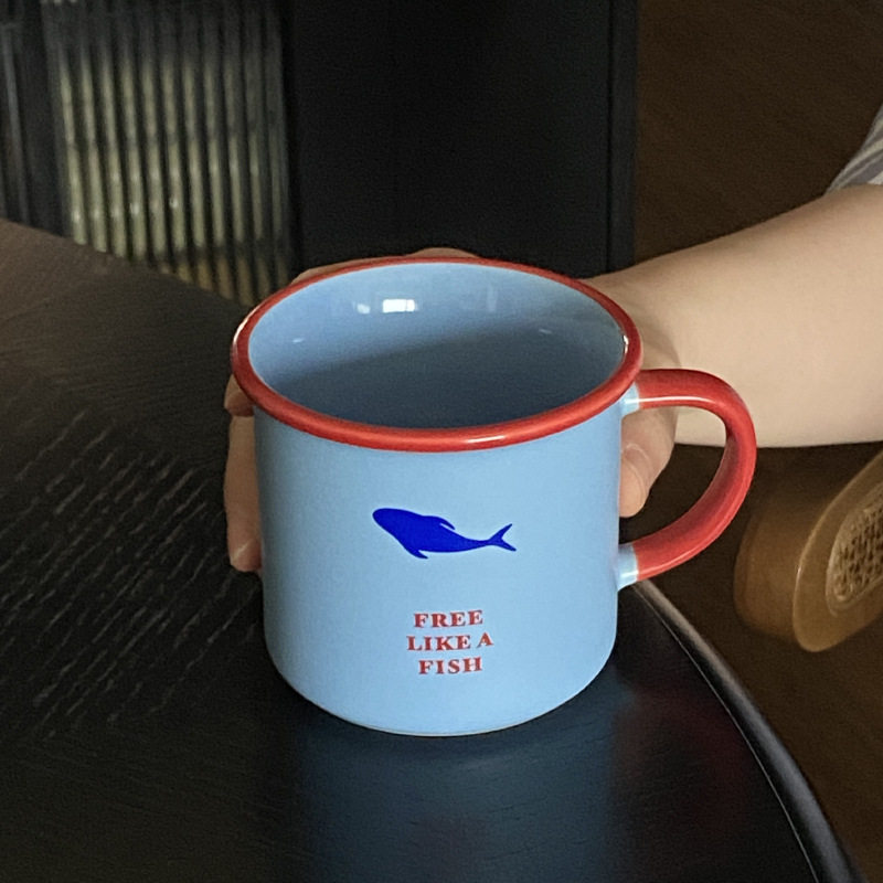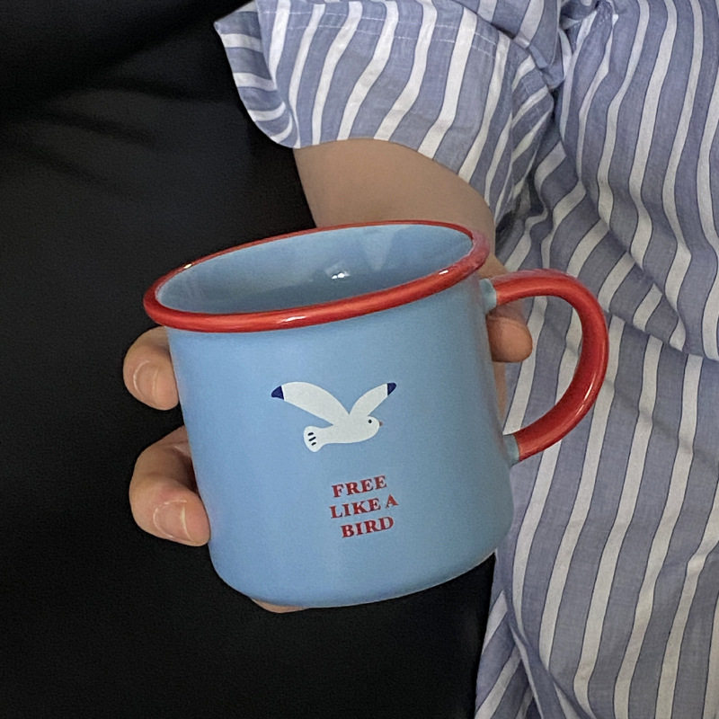 简约小众设计陶瓷杯子蓝色自由飞鸟马克杯带把防烫撞色情侣咖啡杯