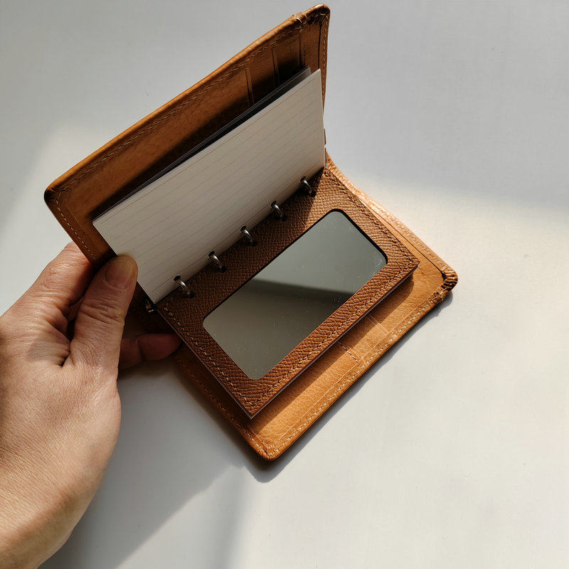 原创M5手账配件活页本镜子真皮边框小尺寸迷你亚克力镜片方便便携
