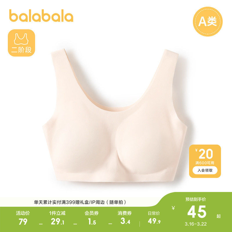 巴拉巴拉女童小背心儿童内衣发育期少女文胸女孩防凸点防走光舒适