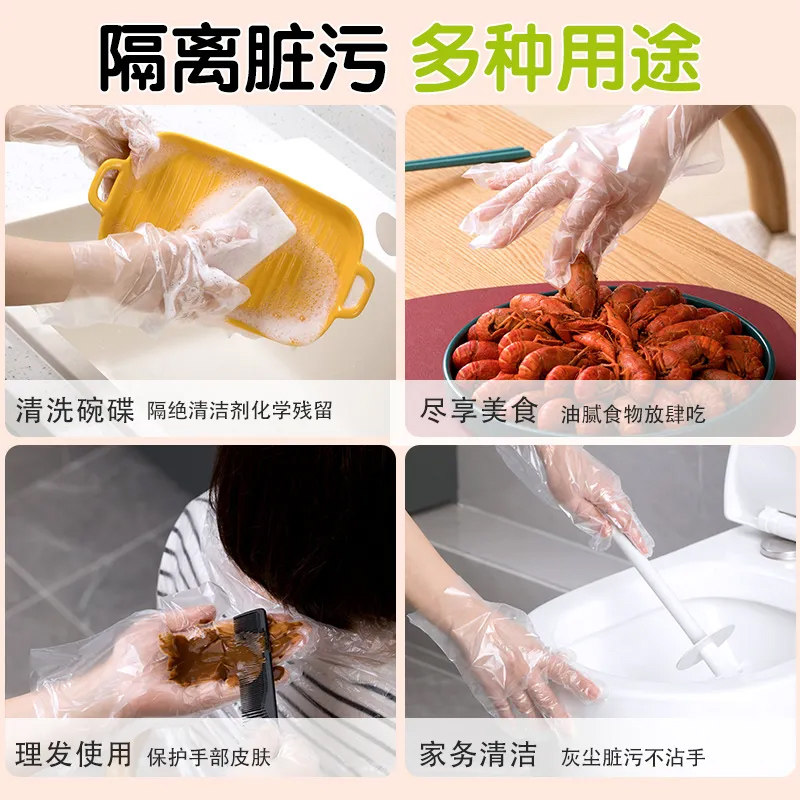 一次性手套食品级加厚款透明PE手套手膜餐饮小吃龙虾烘培商用批发