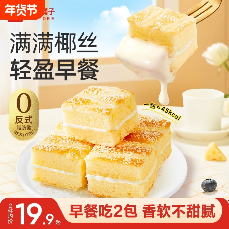 良品铺子椰蓉嫩蛋糕水牛奶蛋糕面包早餐整箱学生下午茶休闲零食