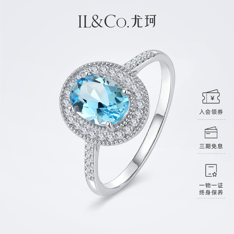 ILCO尤珂「冰蓝鸽子蛋」18K金海蓝宝戒指天然彩宝钻石克拉椭圆戒