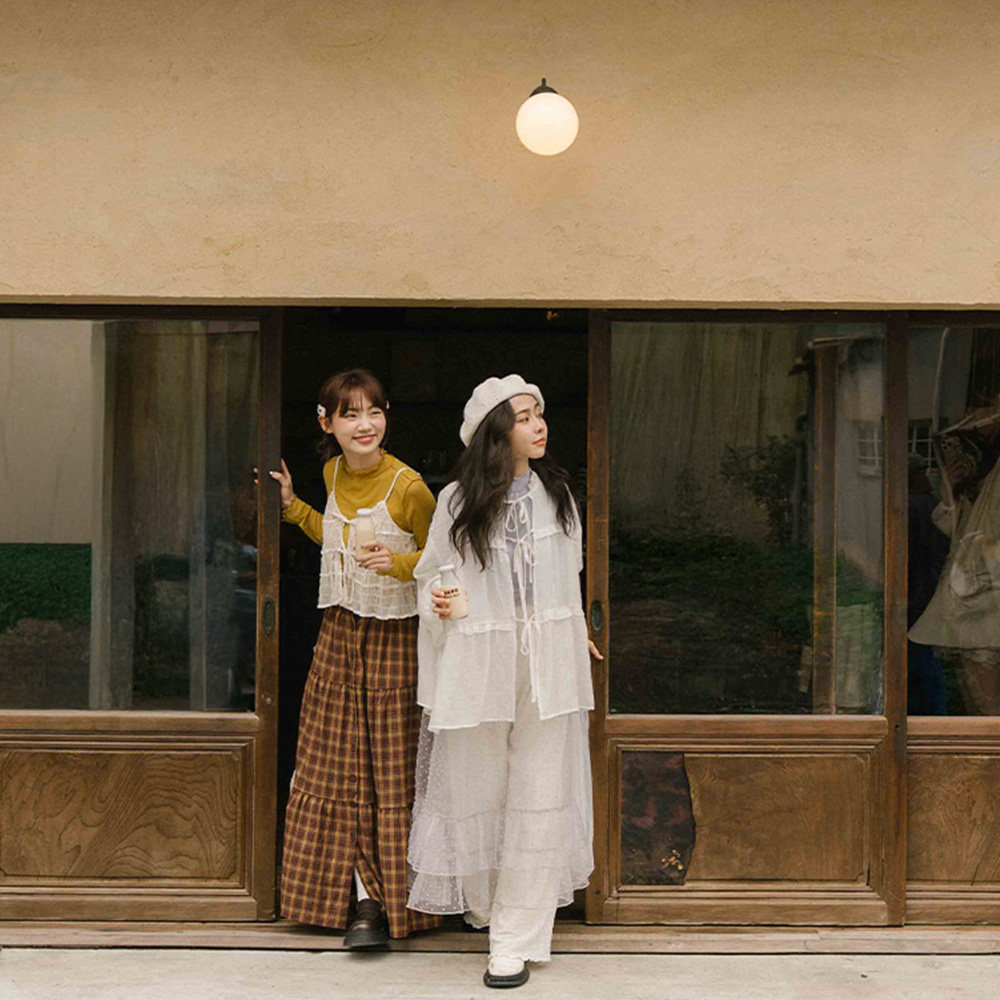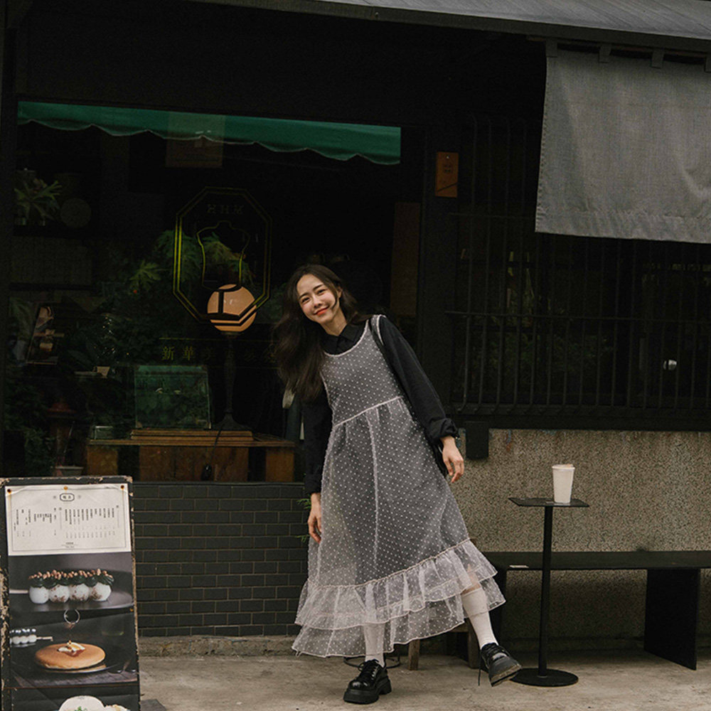 QUEENSHOP 2025秋冬新品女装立体点点蛋糕下摆透肤罩衫灰01099138