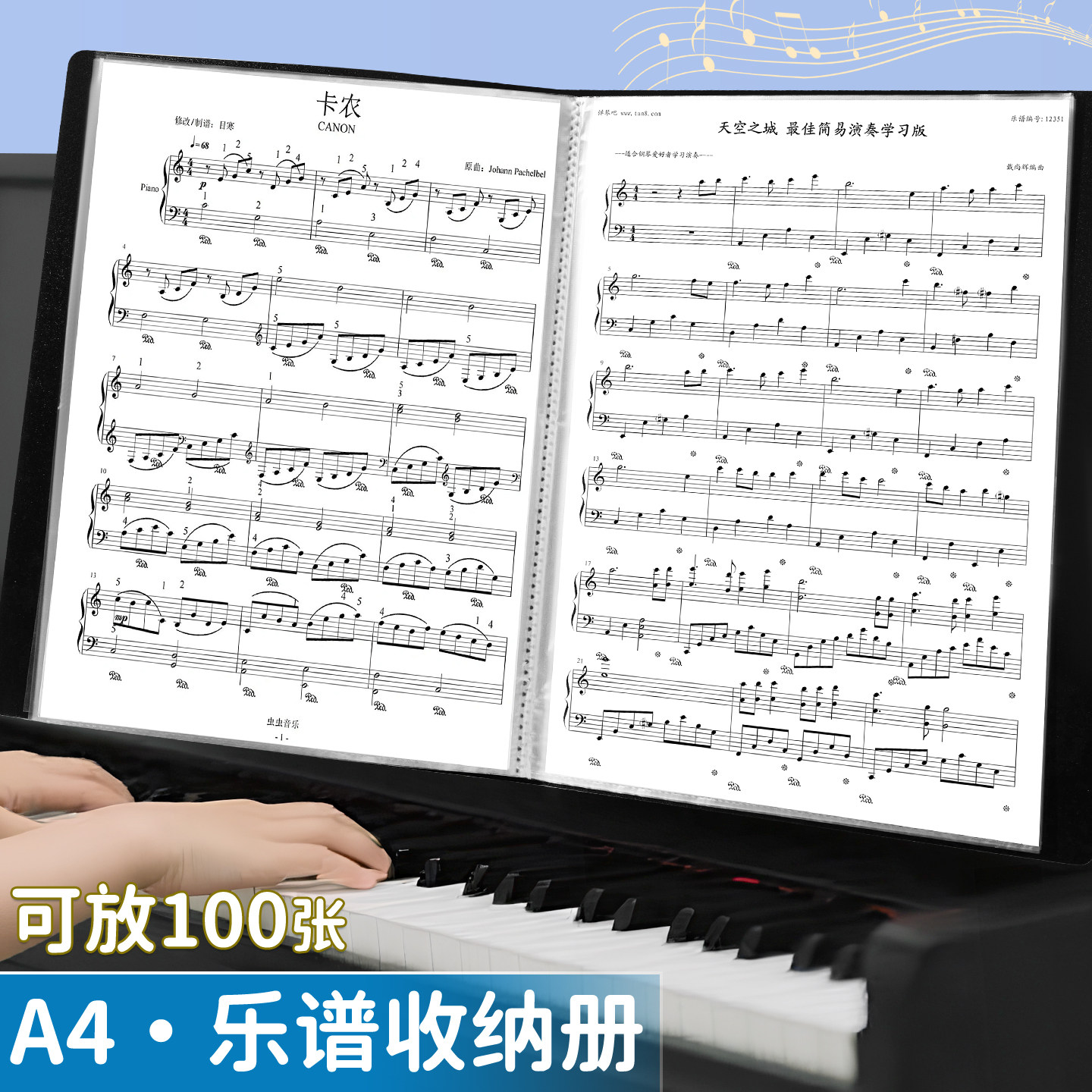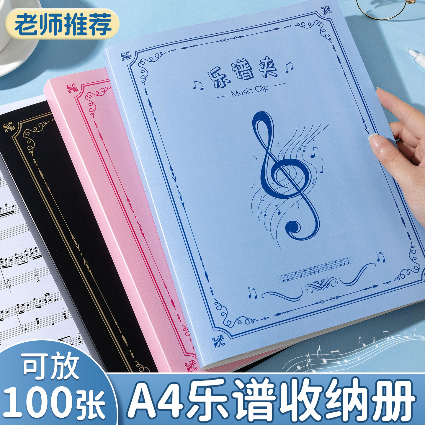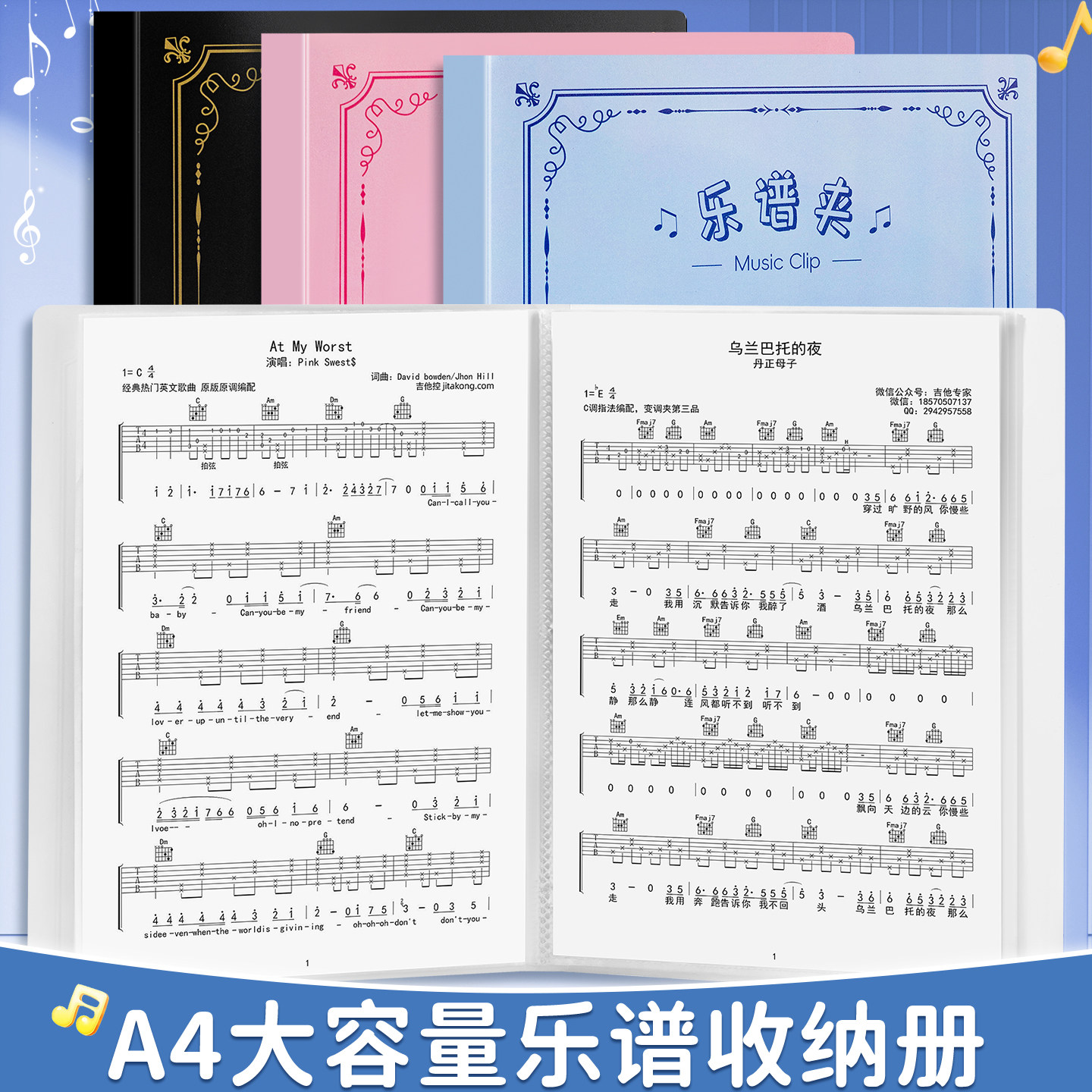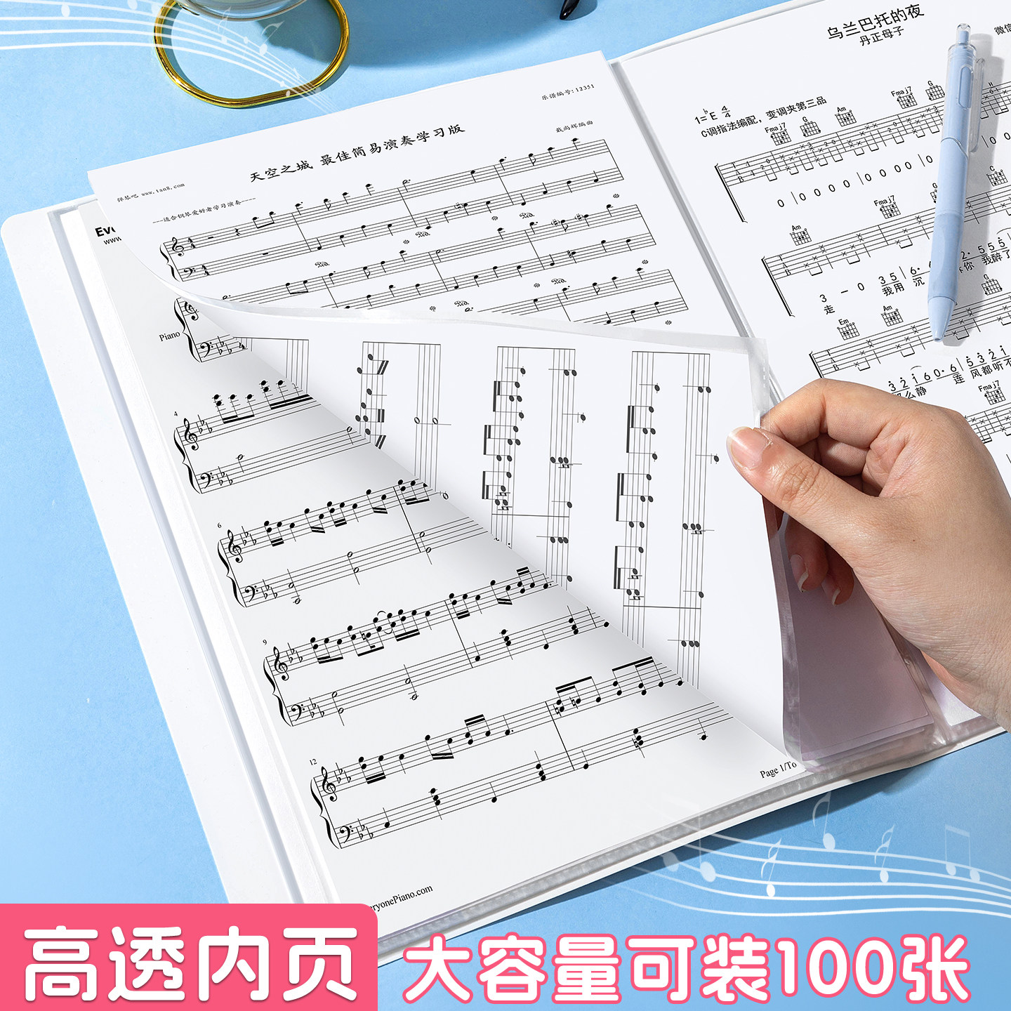 高档三色可选A4乐谱歌谱夹吉他钢琴专用谱夹不反光文件夹透明竖插纸双面可插页展开式资料收纳册合唱曲谱琴谱
