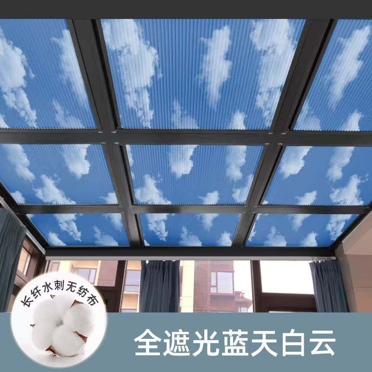 玻璃阳光房蜂巢帘电动手动防晒隔热降温遮光窗帘天棚遮阳百叶窗帘