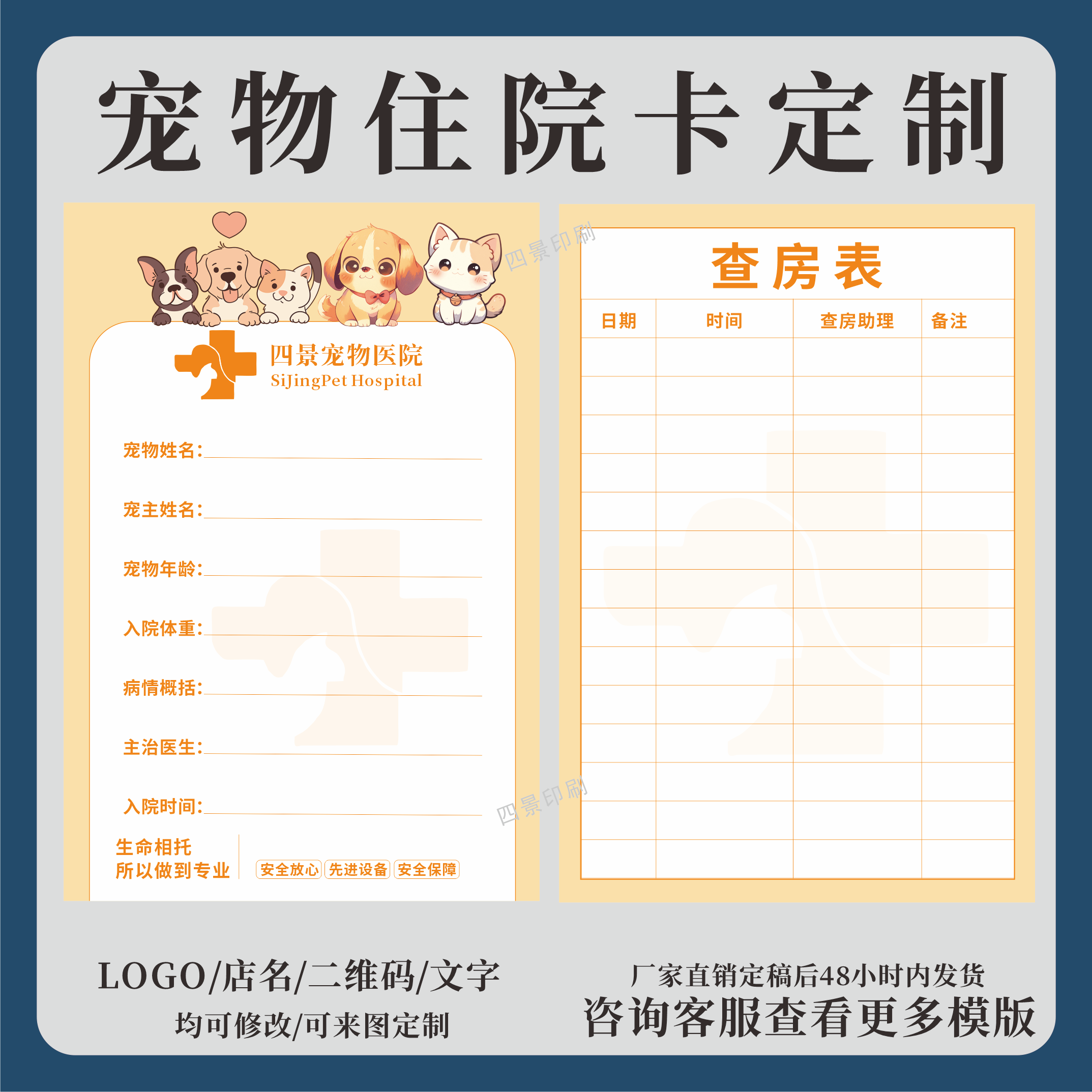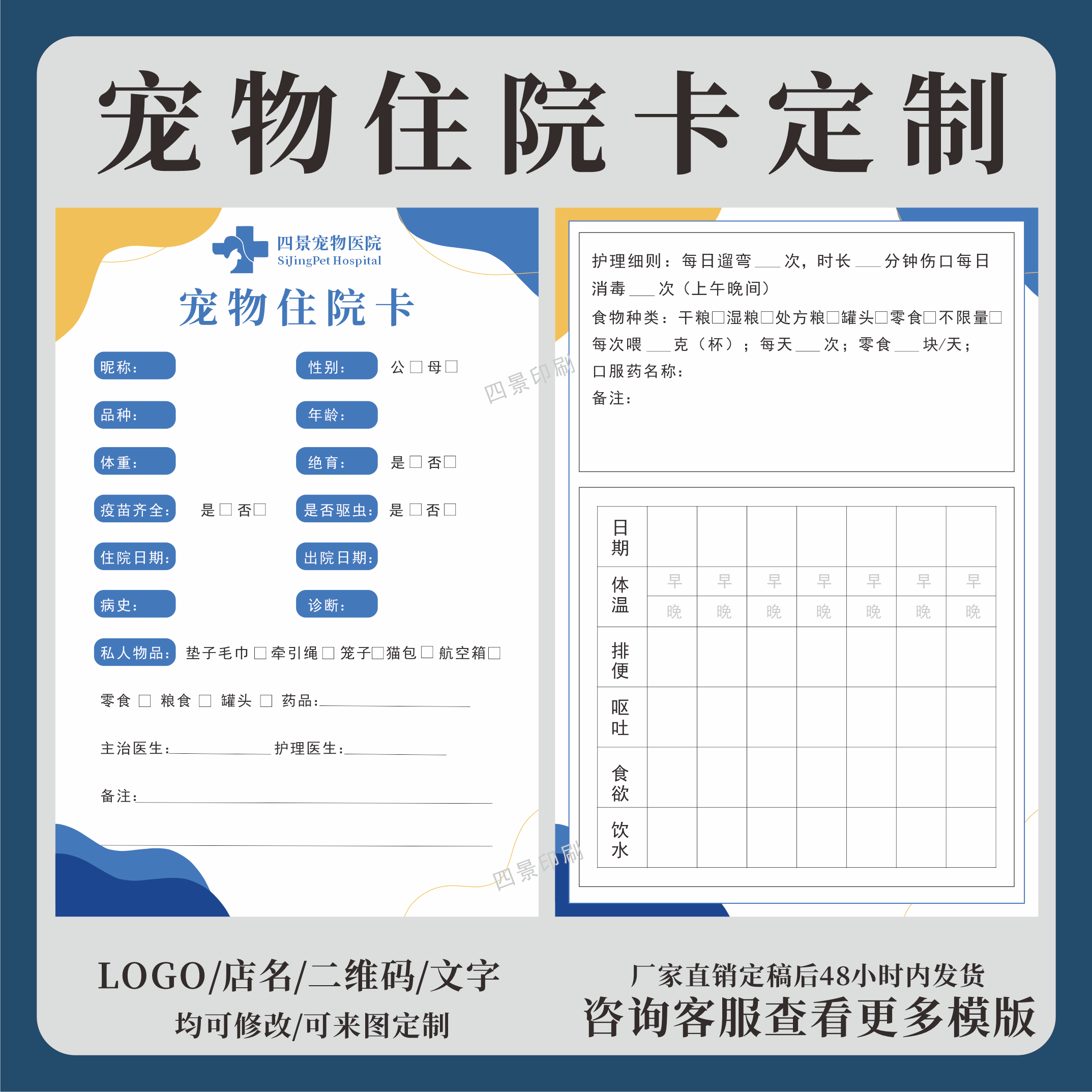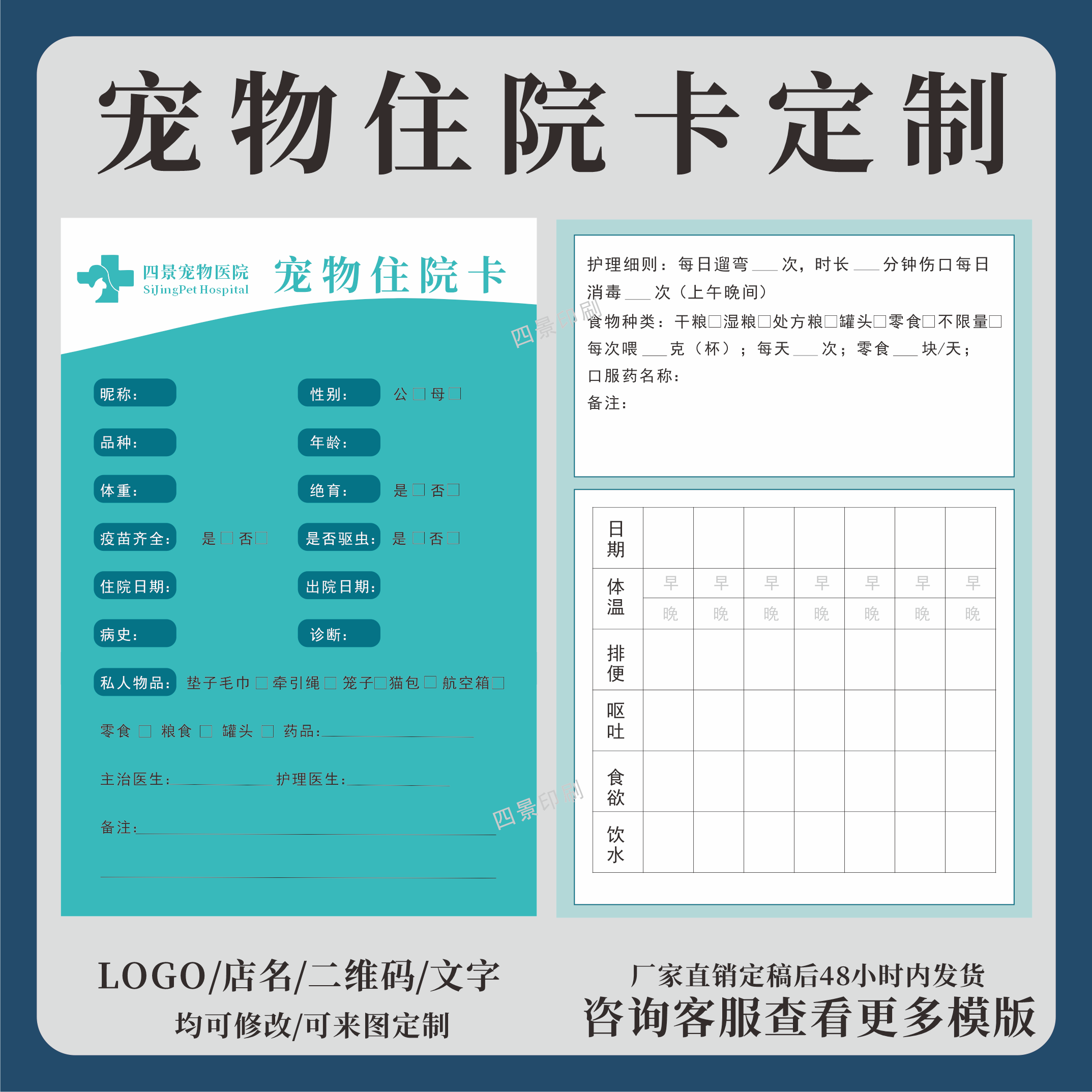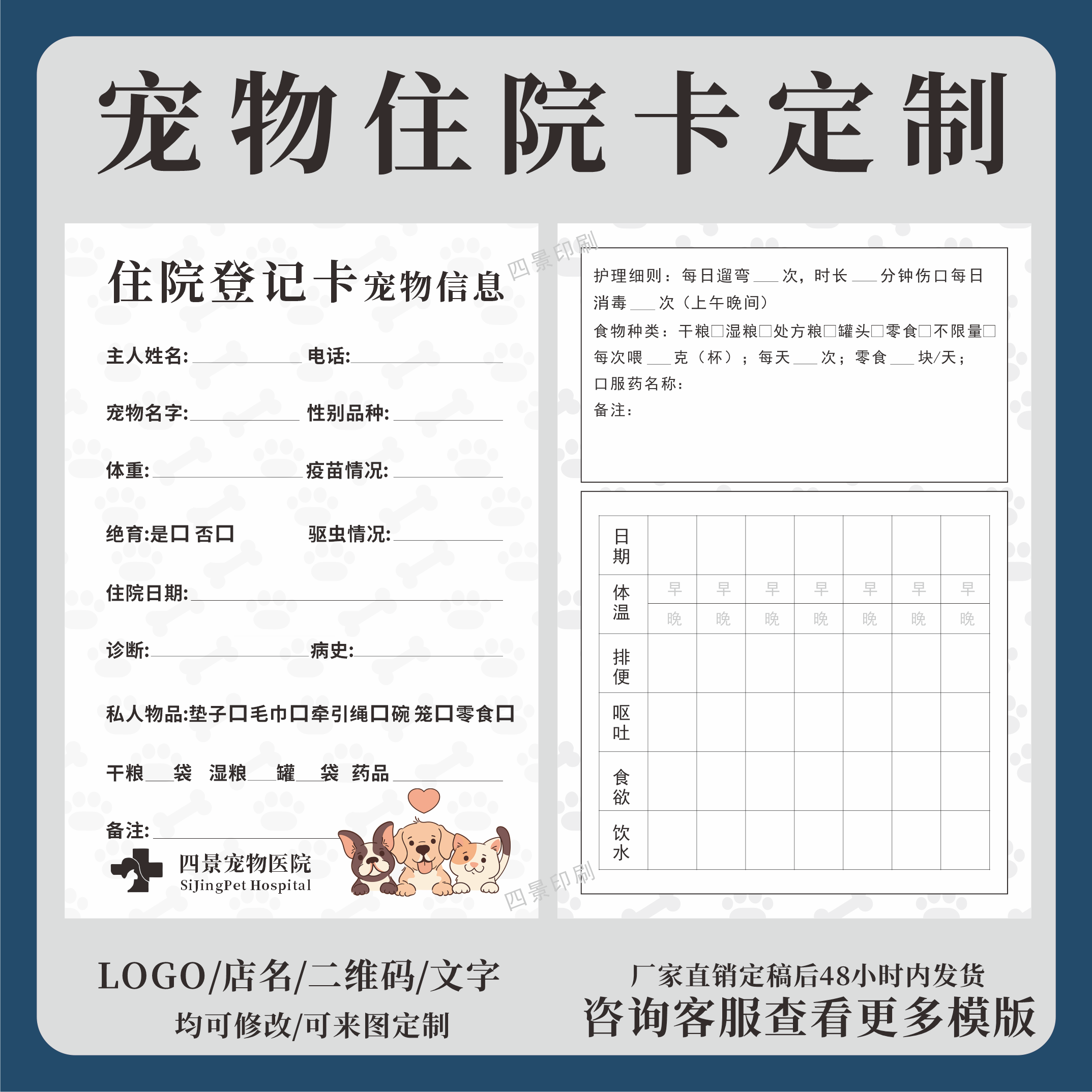 宠物医院猫狗住院卡信息挂牌宠物医院笼位卡定制住院登记卡印刷