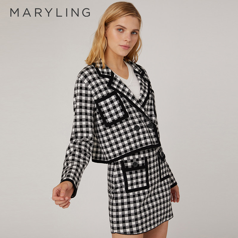 MARYLING玛俪琳初秋新品黑白格子提花包臀针织半身裙A1CBW05590