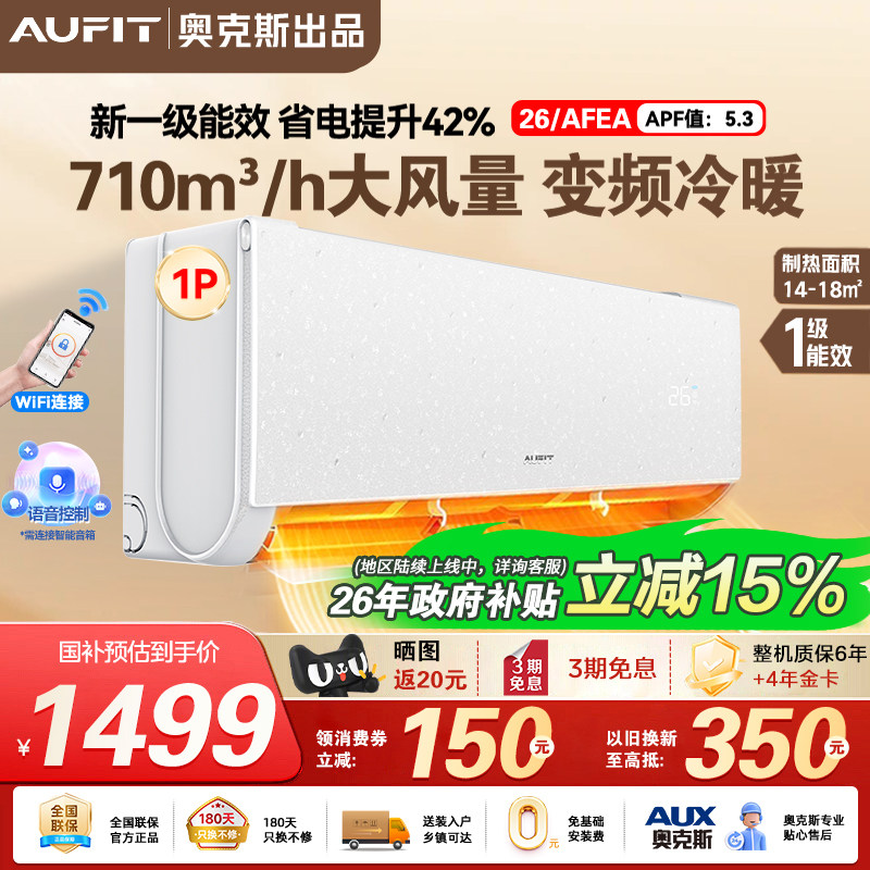 AUFIT空调奥克斯出品1/1.5匹一级能效挂机2/3匹立式柜机冷暖变频