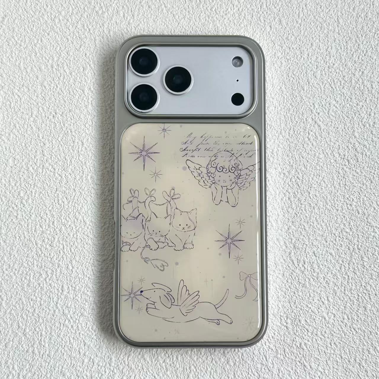 ins可爱天使小猫小狗电镀银磁吸适用苹果iPhone17promax手机壳1615pro小米1415Pro华为mate60p70三星S23防摔