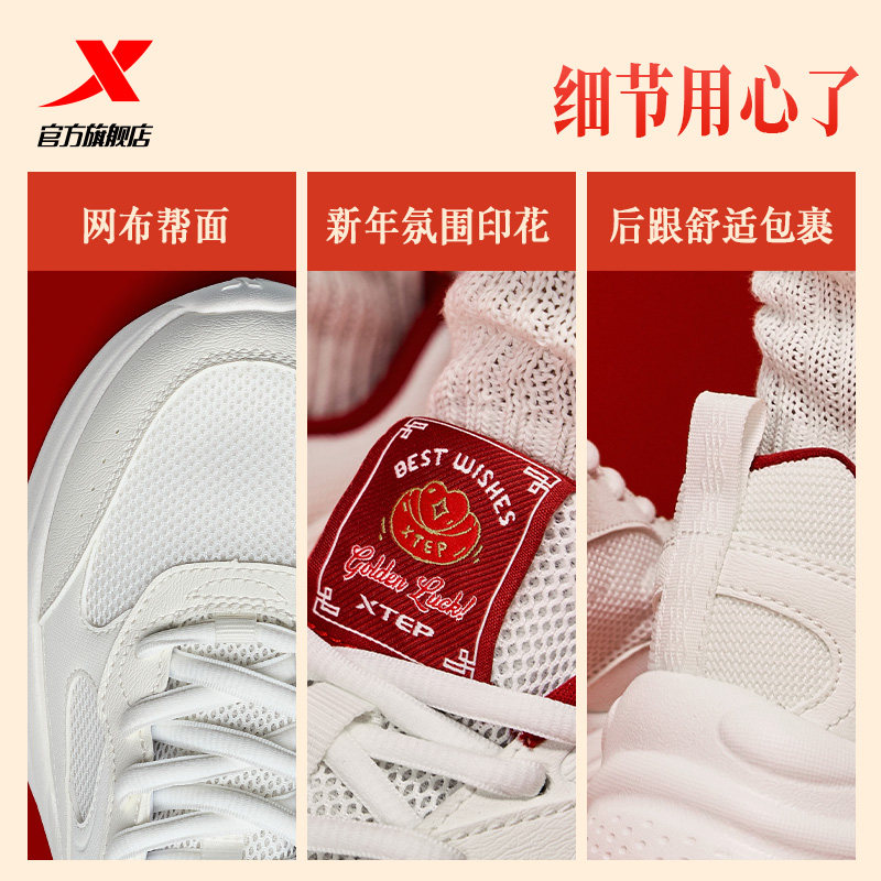 特步星火休闲鞋男鞋冬季革面轻便百搭厚底增高女鞋革网正品运动鞋