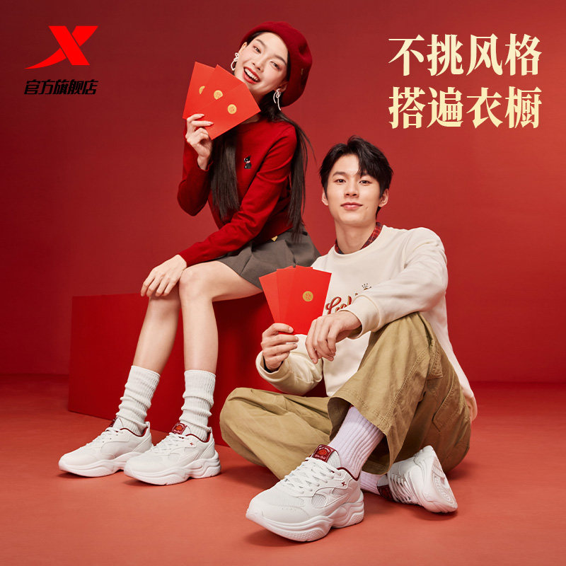 特步新春系列丨星尘休闲鞋男鞋冬季增高百搭老爹鞋轻便运动鞋女鞋