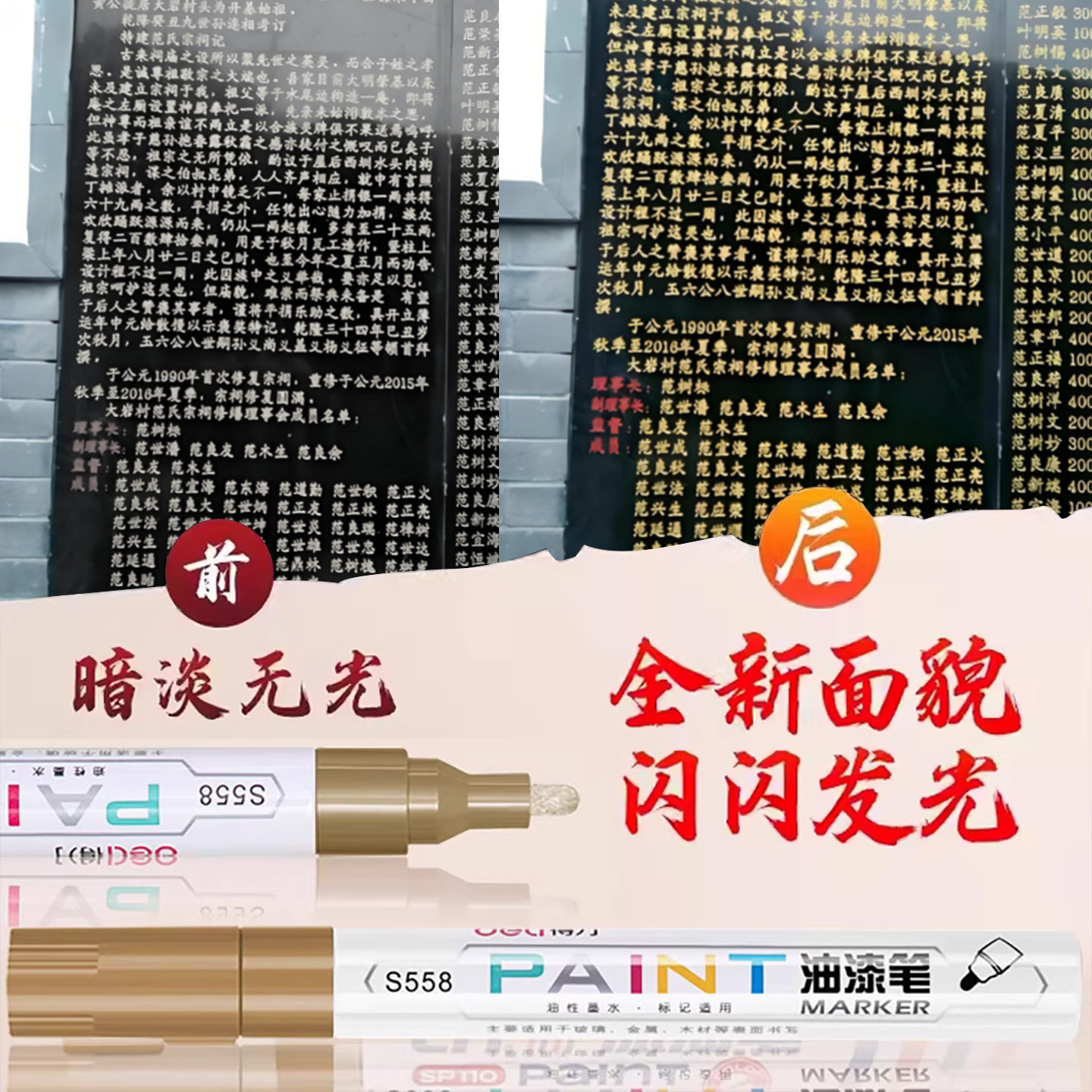 得力【十年不易褪色●防水抗晒】石卑文牌匾门金漆补漆笔描字速干不掉色石碑漆笔不掉色碑文补漆笔描红笔
