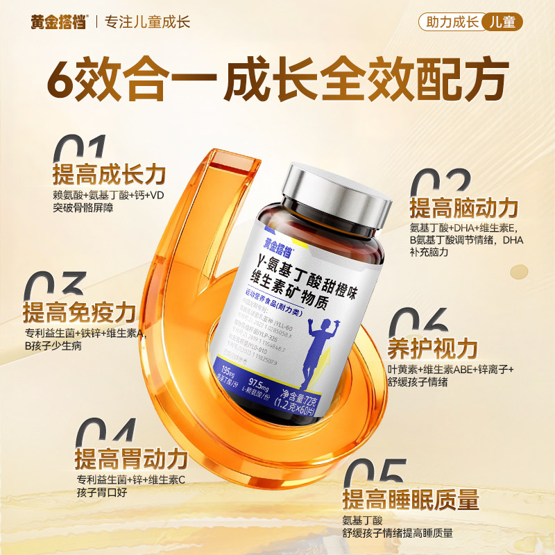 黄金搭档氨基丁酸y赖氨酸儿童青少年生长素维生素钙片官方旗舰店