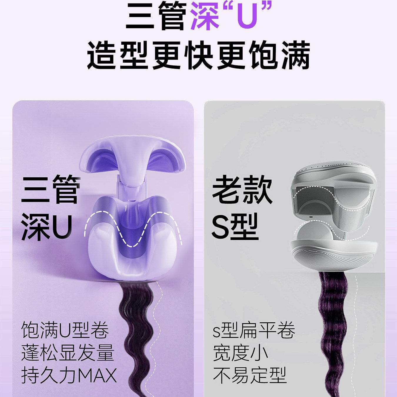 lena蛋卷头卷发棒32mm三管蛋蛋卷棒深v大卷负离子夹板卷发水波纹