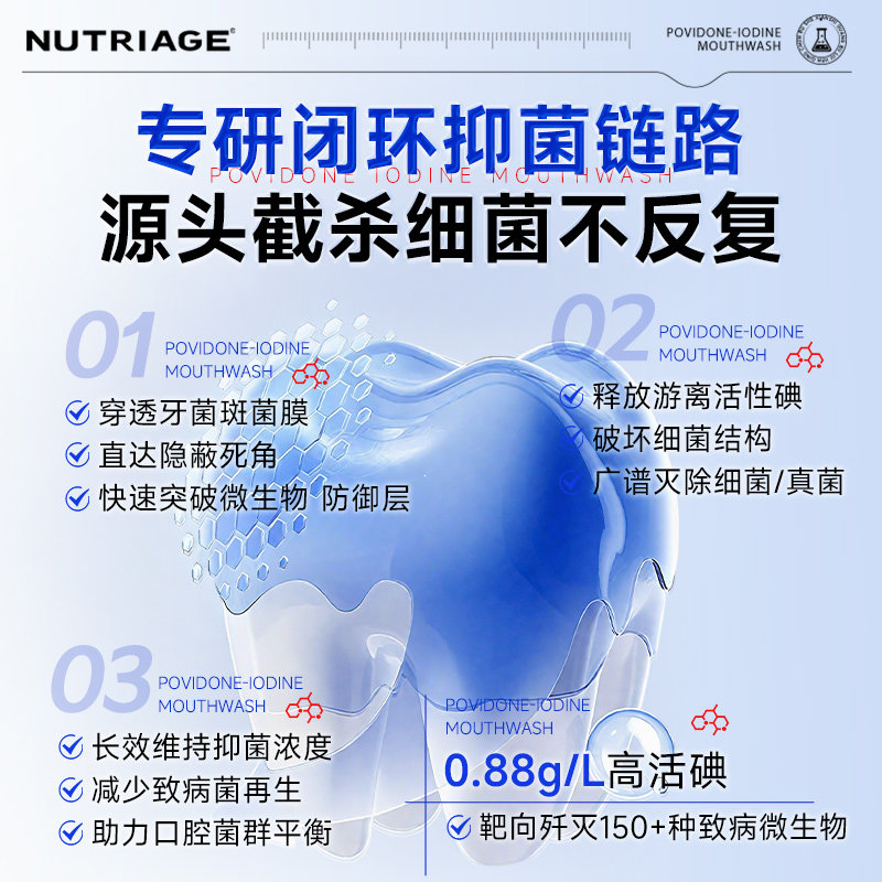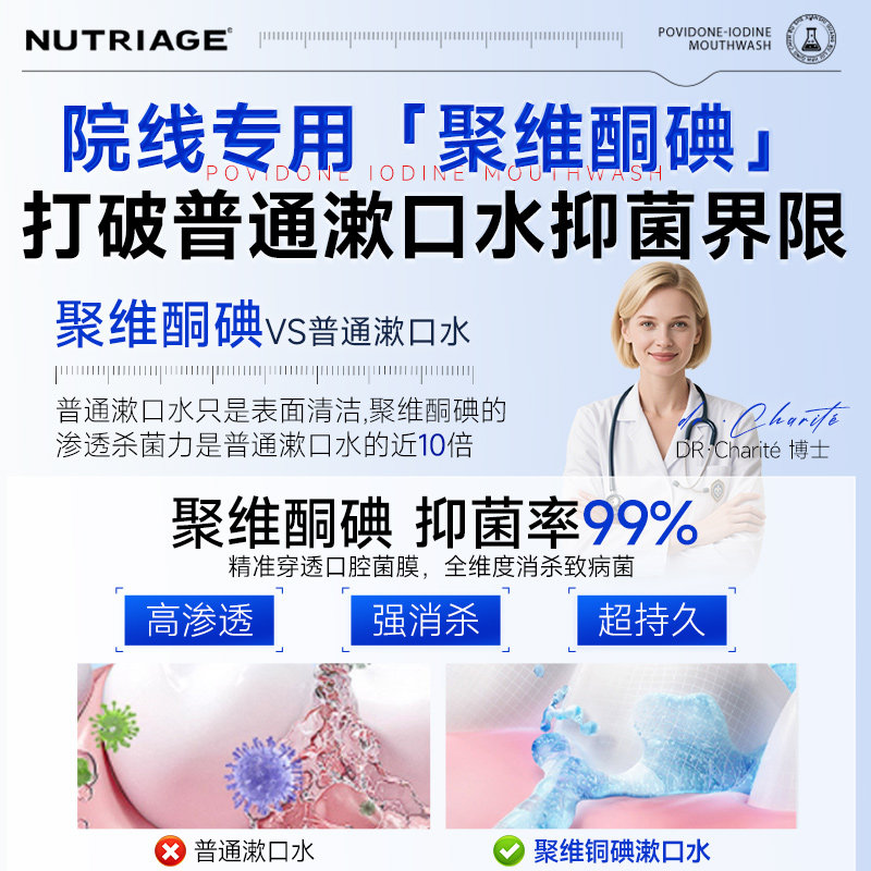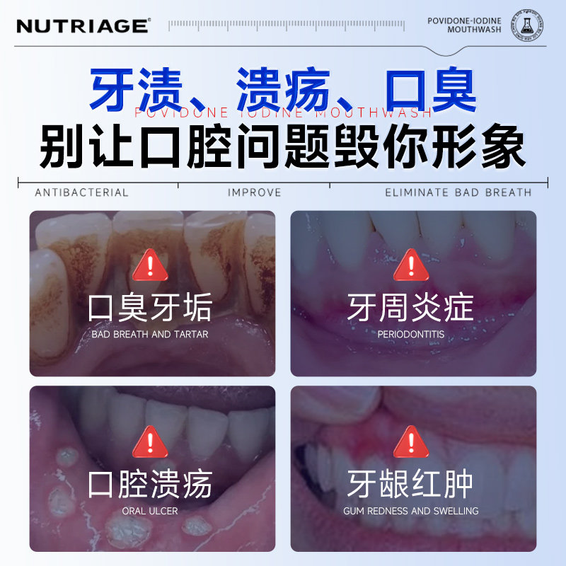聚维酮碘含漱液漱口水杀菌除口臭牙结石持久留香碘伏消牙周炎正7