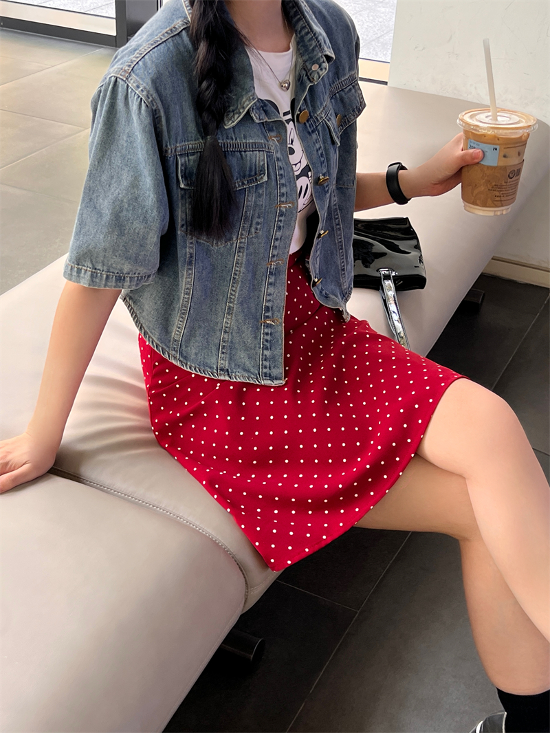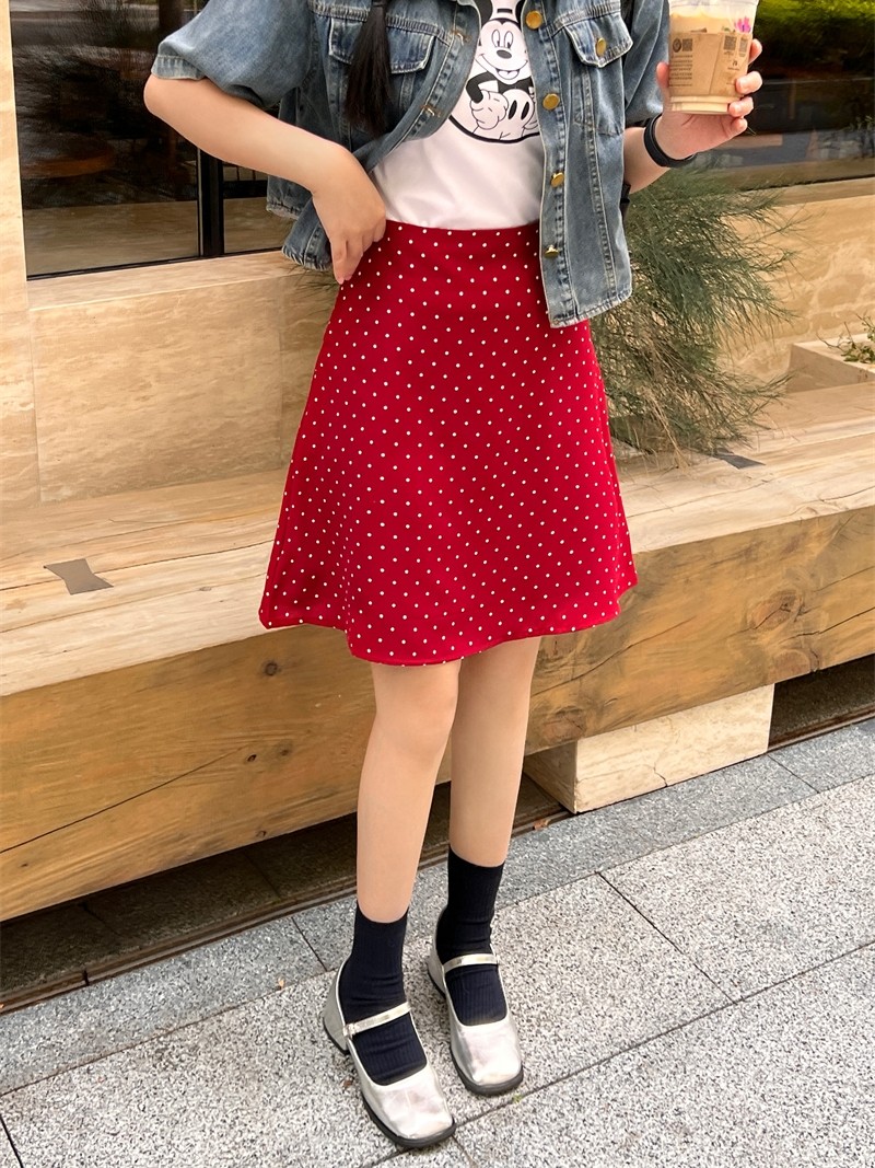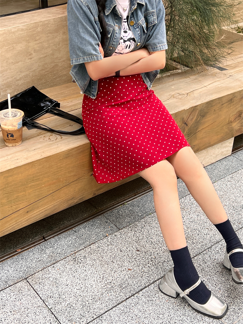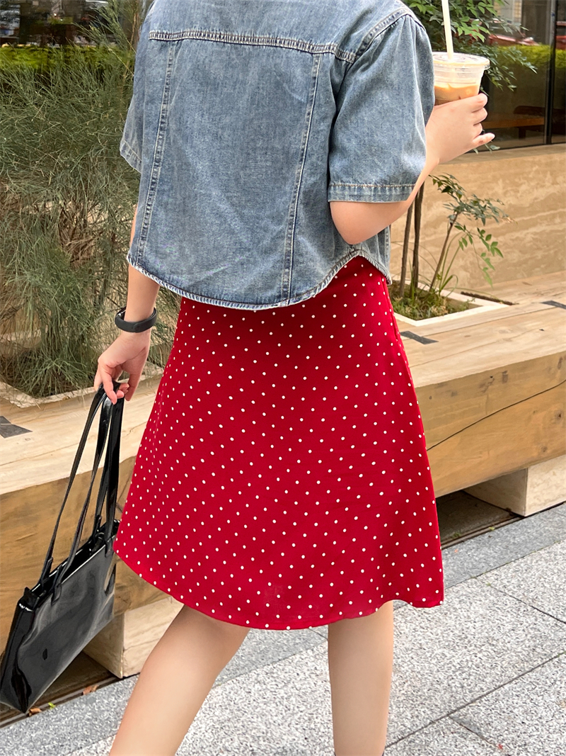 复古红色波点半身裙女夏季大码高腰包臀中裙显瘦a字伞裙遮胯短裙