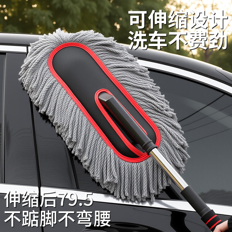 徕本弯杆洗车拖把不伤车漆软毛伸缩车用汽车刷子专用除尘掸子神器