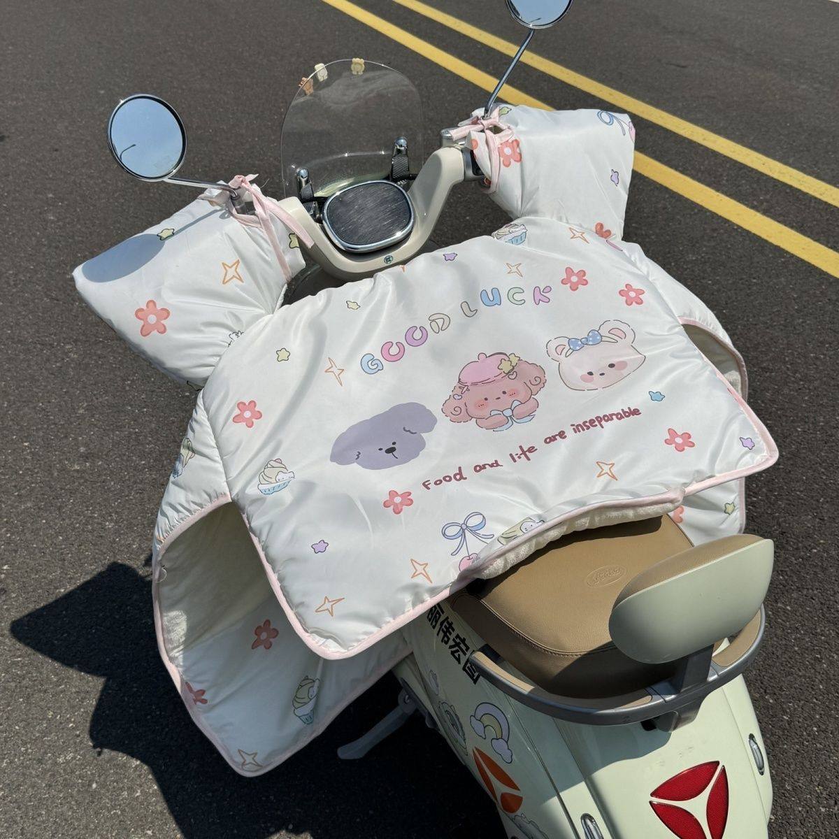 冬季电动摩托车挡风被卡通加绒保暖防寒防风罩侧翼春秋款双面防水