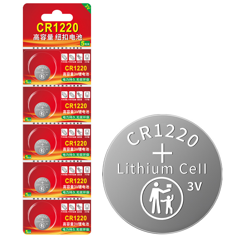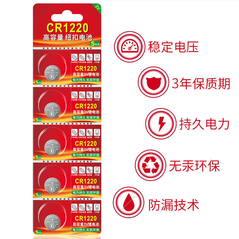CR1220纽扣电池适用于卡西欧圆形手表汽车电动车防盗钥匙遥控器电子秤计算机小型玩具闪光灯条3v智能纽扣电池