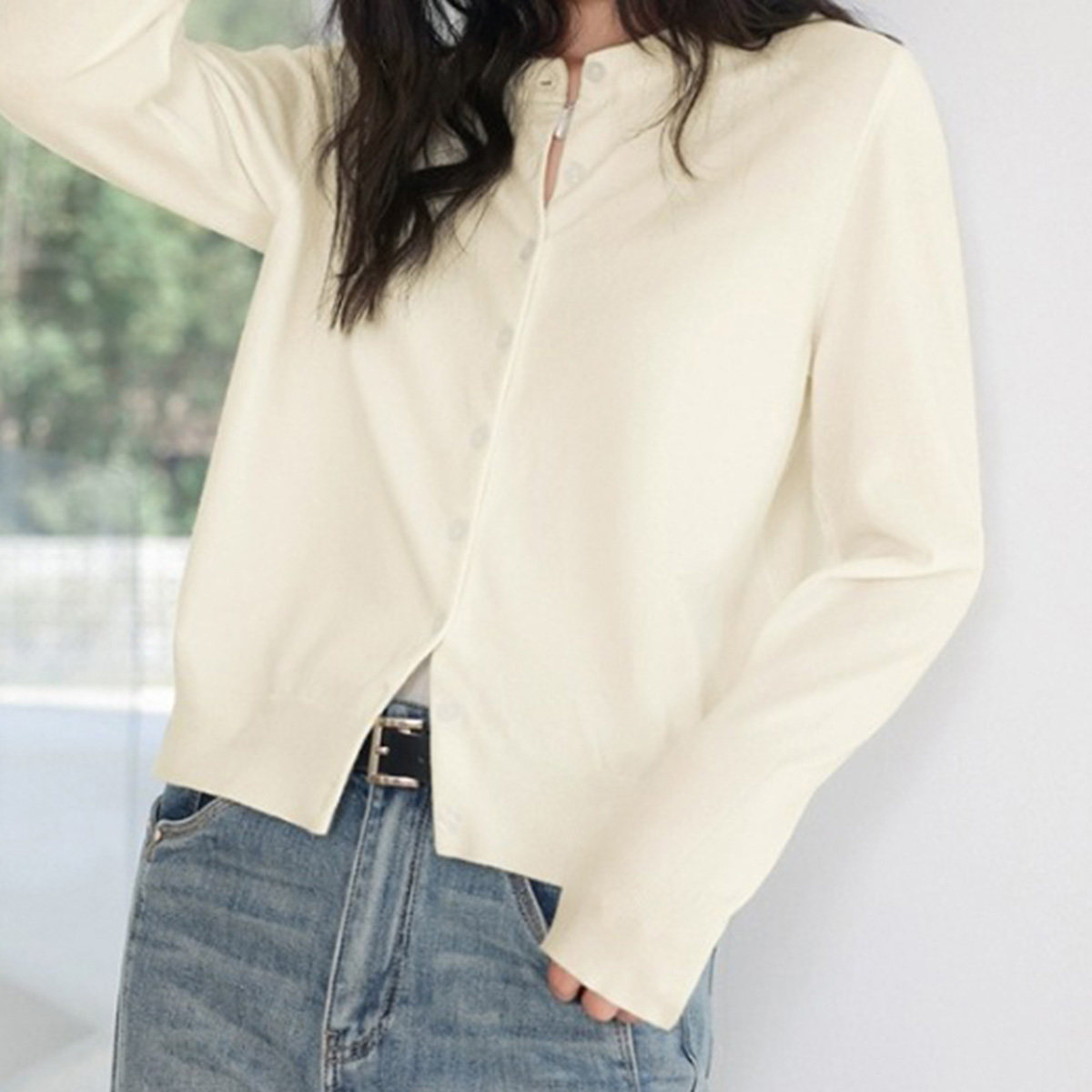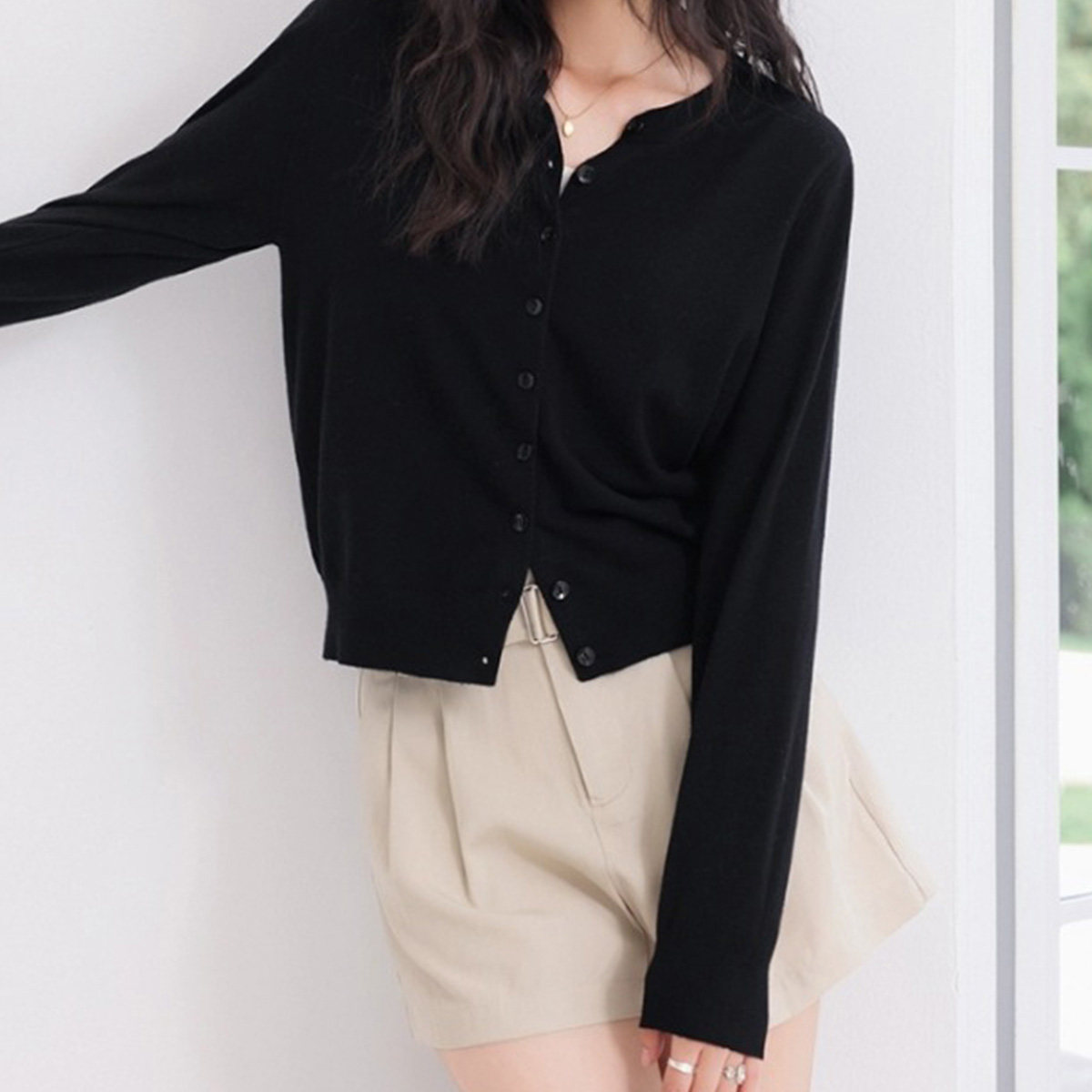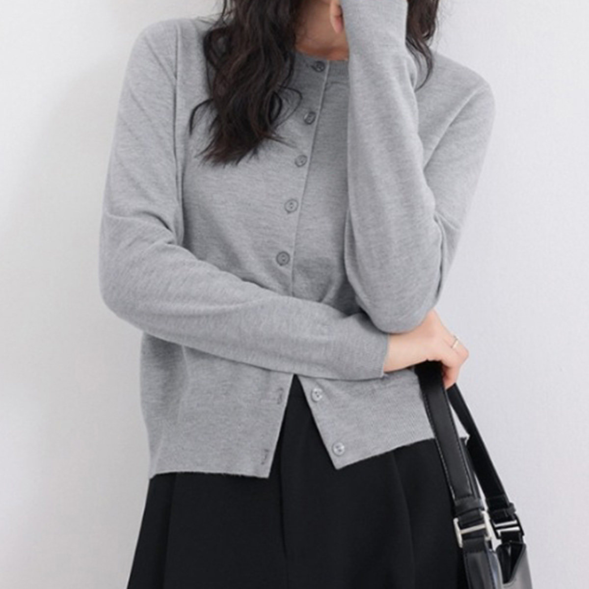 one more纯色经典针织开衫女2026新款春季百搭毛衣外套短款上衣