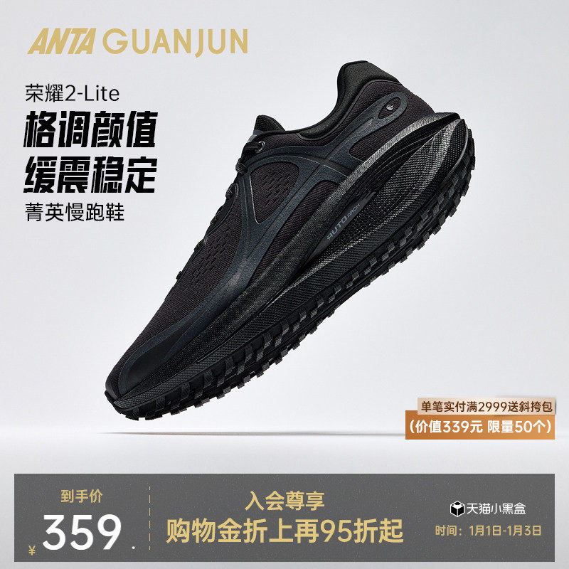 安踏冠军荣耀2-Lite |氮科技轻质厚底缓震通勤路跑防滑耐磨男跑鞋