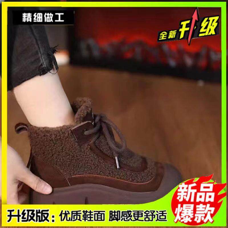 miu家厚底雪地靴女冬季真皮短靴羊毛侧拉链增高厚底加绒毛毛棉鞋