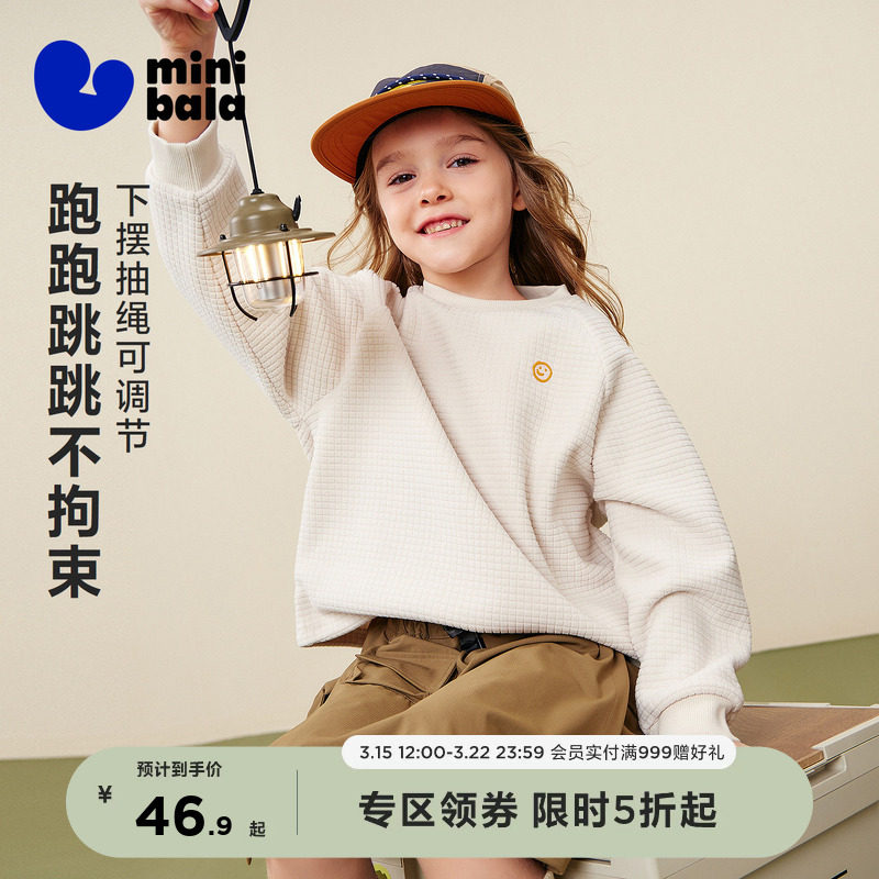 迷你巴拉巴拉男女童卫衣 春新品保暖内里加绒下摆抽绳调节上衣