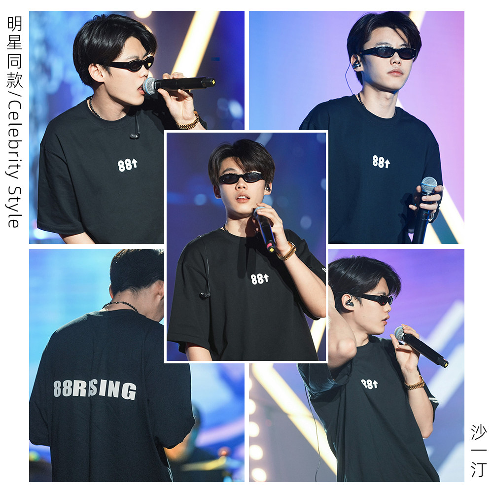 【沙一汀、RichBrian同款】88rising字母Logo胶印宽松情侣短袖T恤