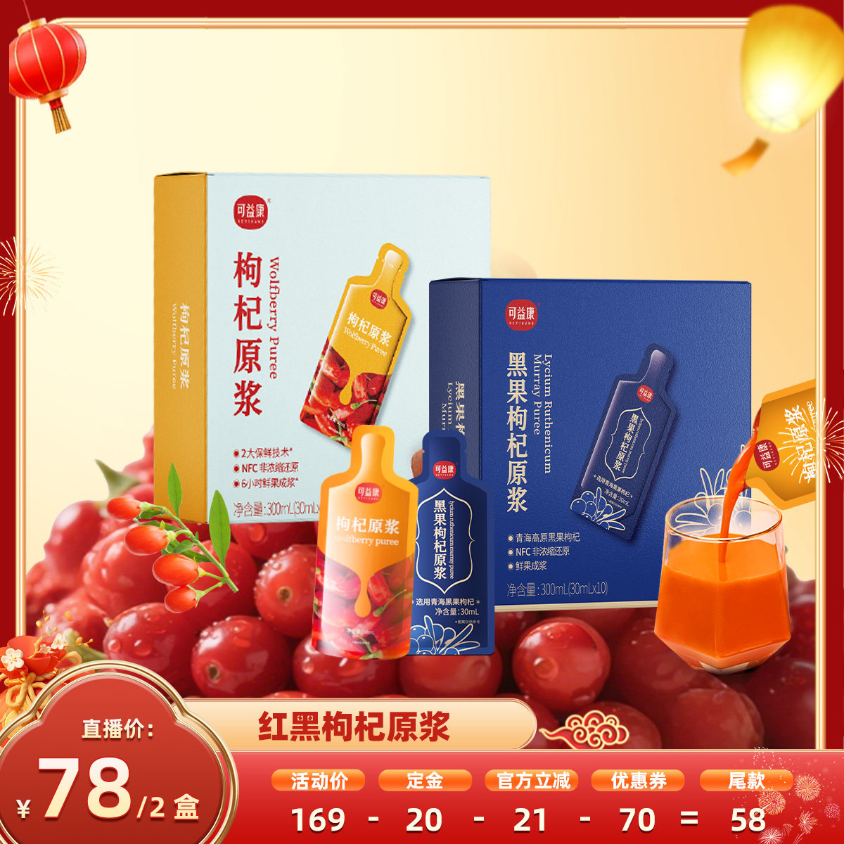 【晁然直播间】可益康宁夏黑枸杞原浆枸杞汁维生素C花青素NFC鲜