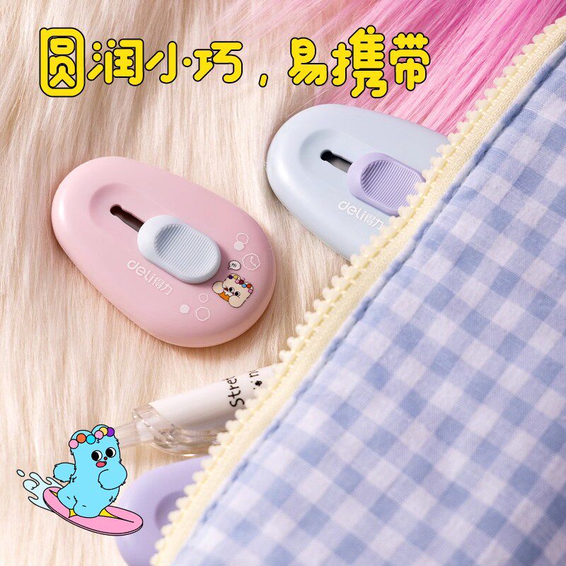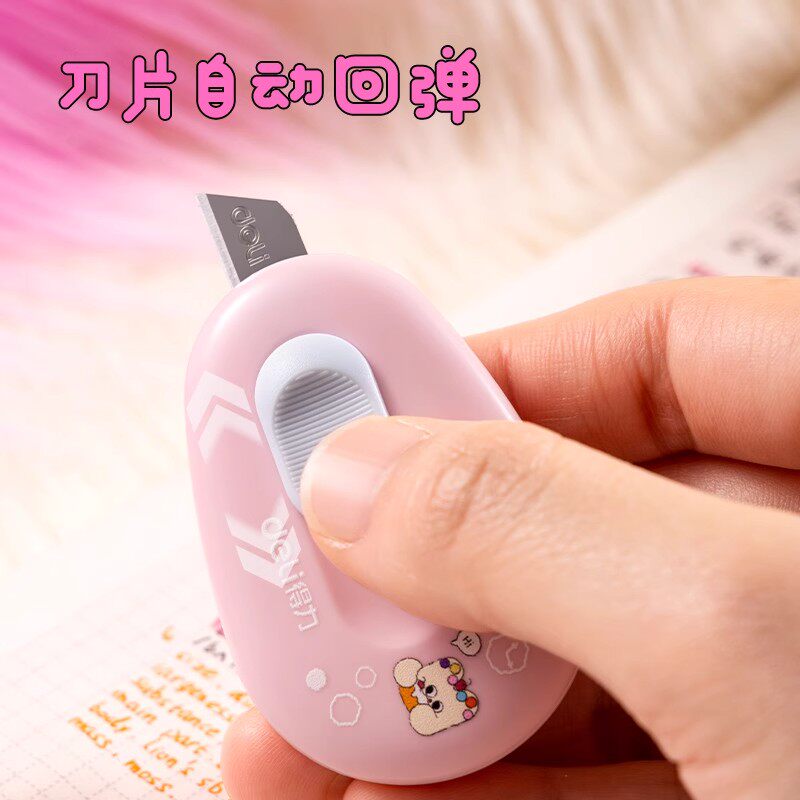 得力美工刀拆快递开箱刀小刀考研特氟龙不粘刀神器拆割包裹开箱器迷你随身小型学生裁纸刀钥匙扣回弹便携安全