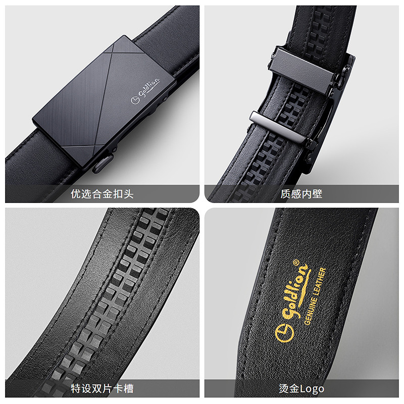 【内扣式】金利来皮带男士新款磨砂自动扣防指纹头层牛皮商务腰带