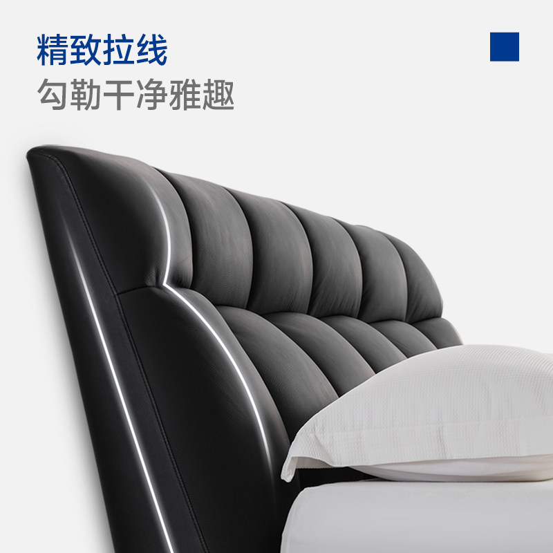 意式真皮床1.8米双人床2米主卧婚床现代简约多功能储物软包皮艺床