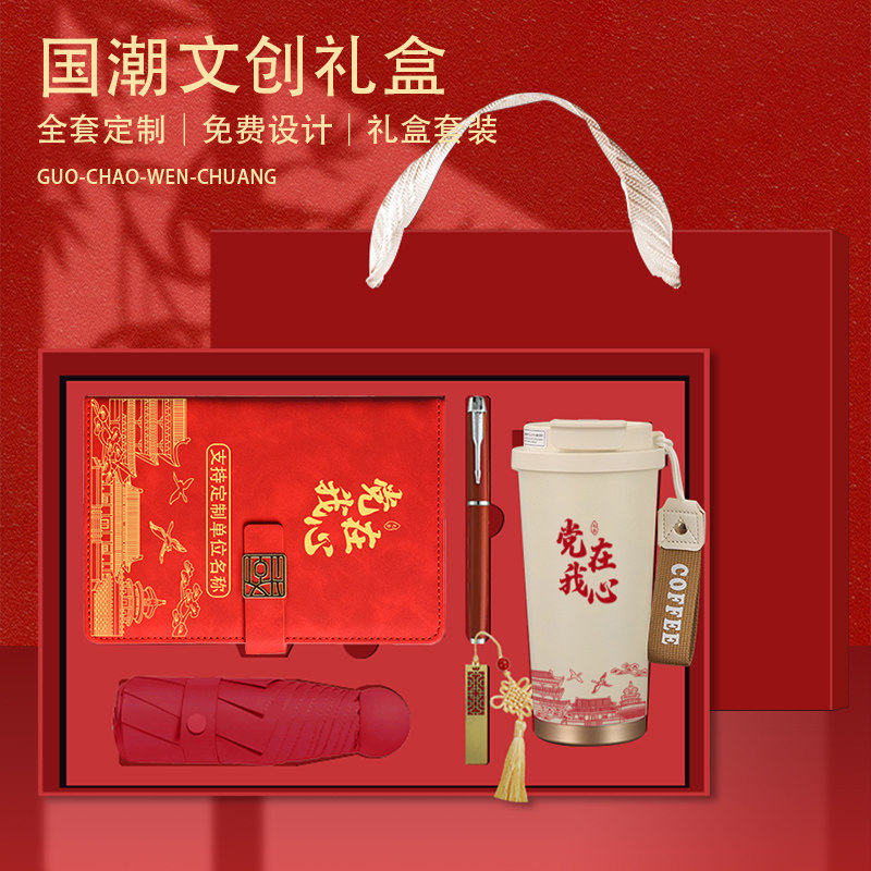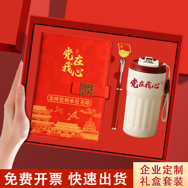 七一党员学习纪念品政治生日礼物党支部会议奖品伴手礼红色主题高档套装社区活动赠品杯子笔书签礼盒定制logo