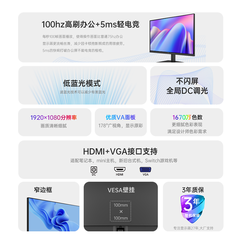 KTC23.8英寸100Hz高清家用护眼办公低蓝光台式电脑显示器屏H24V27