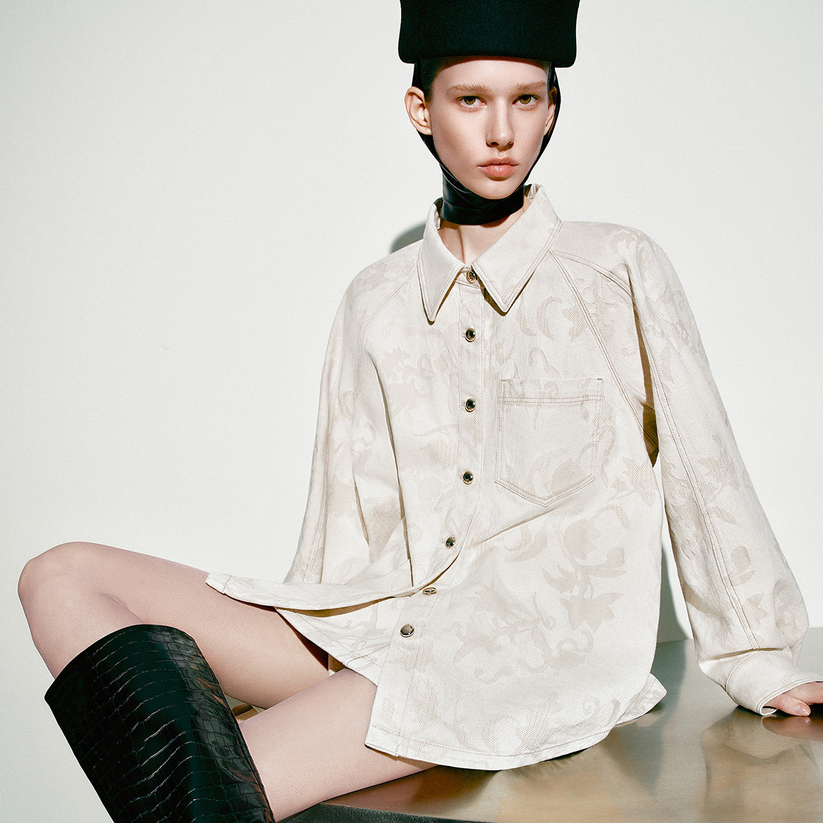 宽松衬衫版型,暗纹满印肌理感面料