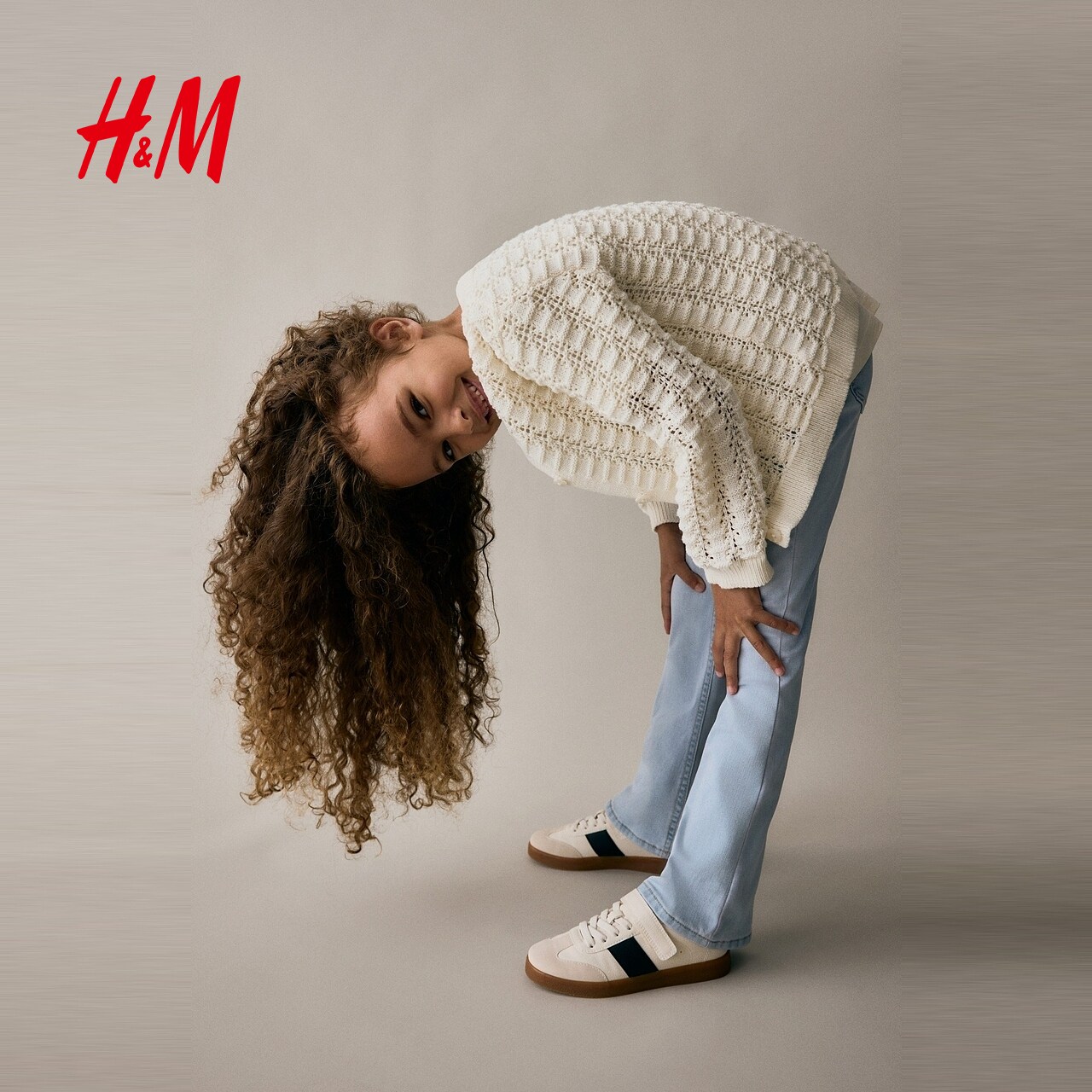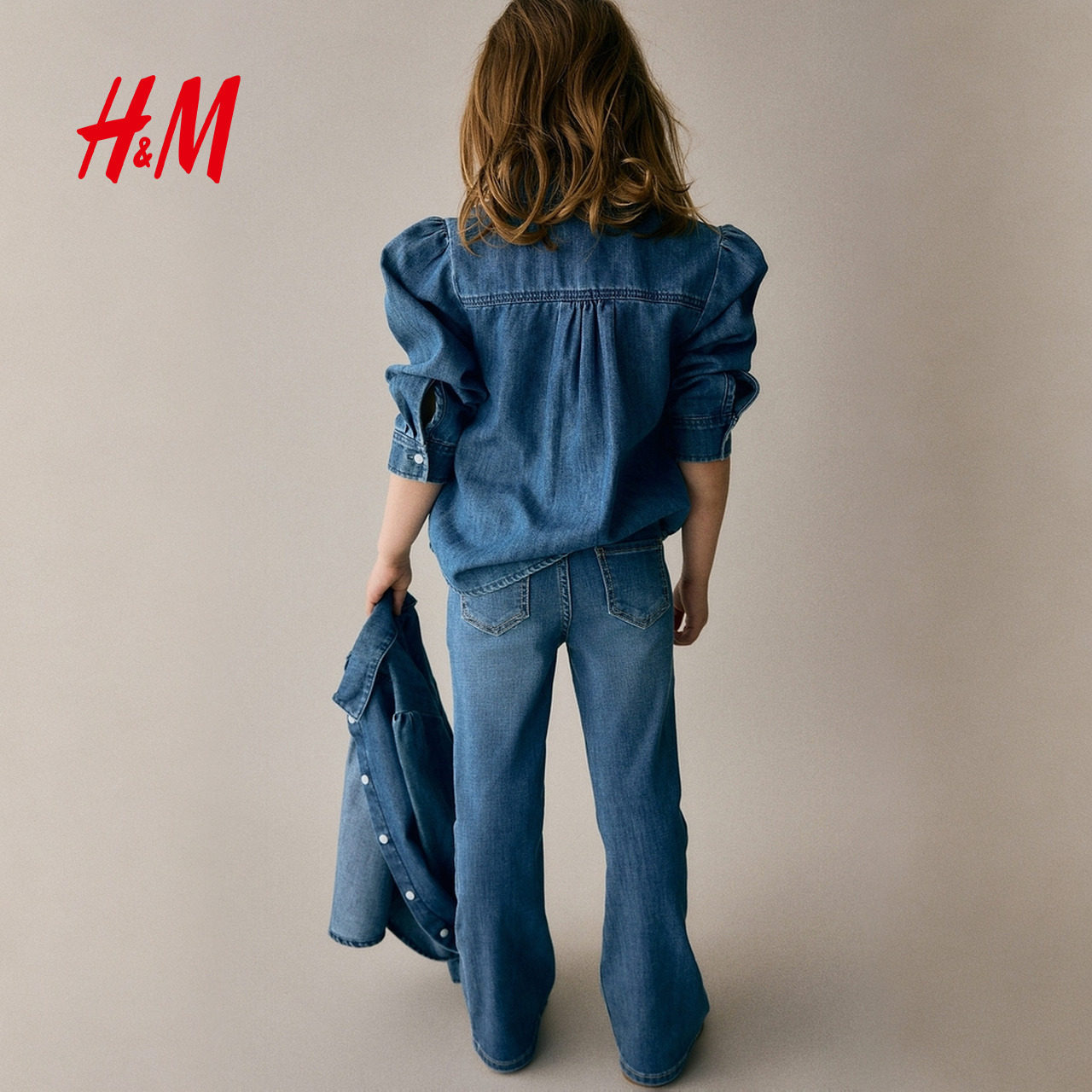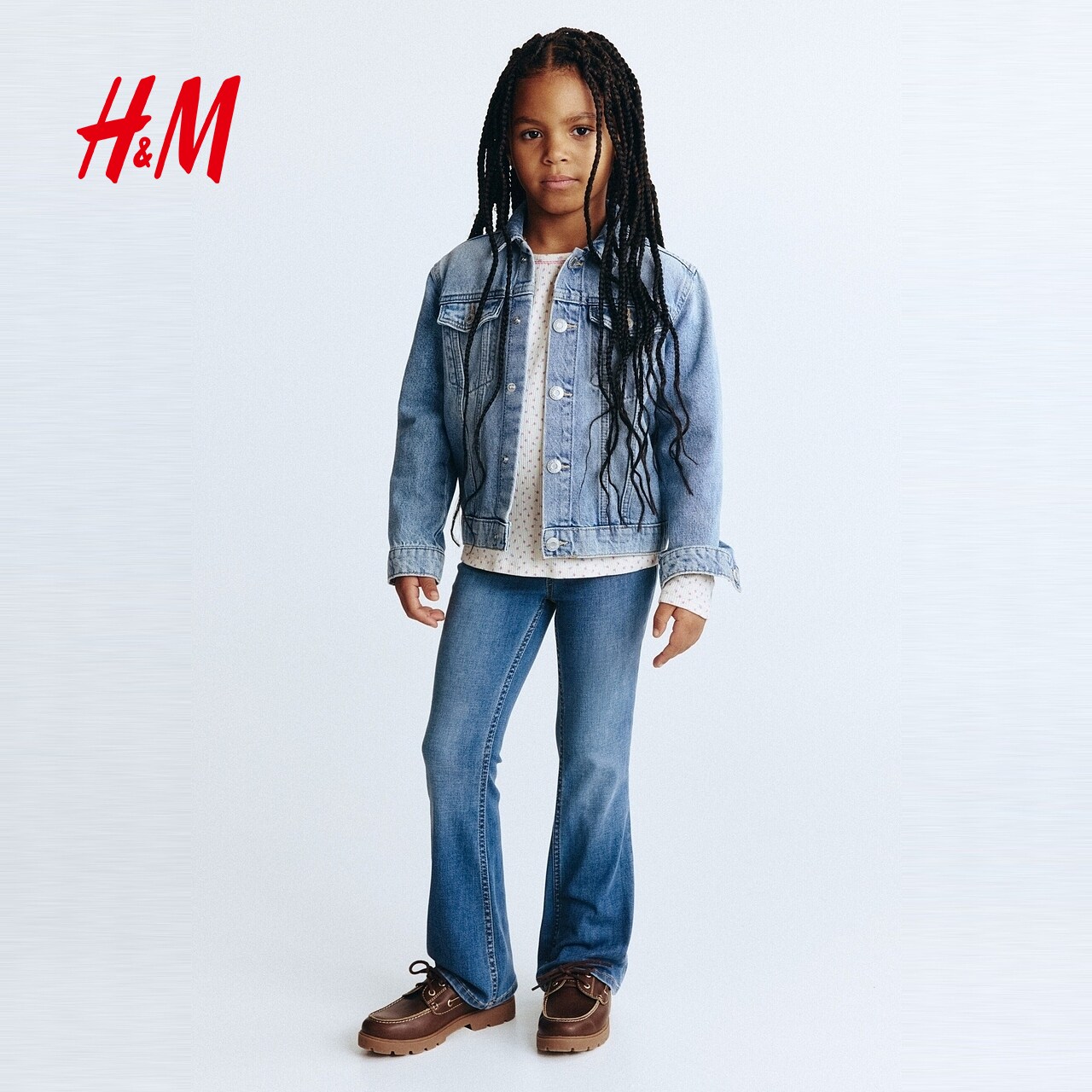 HM童装儿童女童牛仔裤春季弹力修身时髦休闲喇叭裤1228540