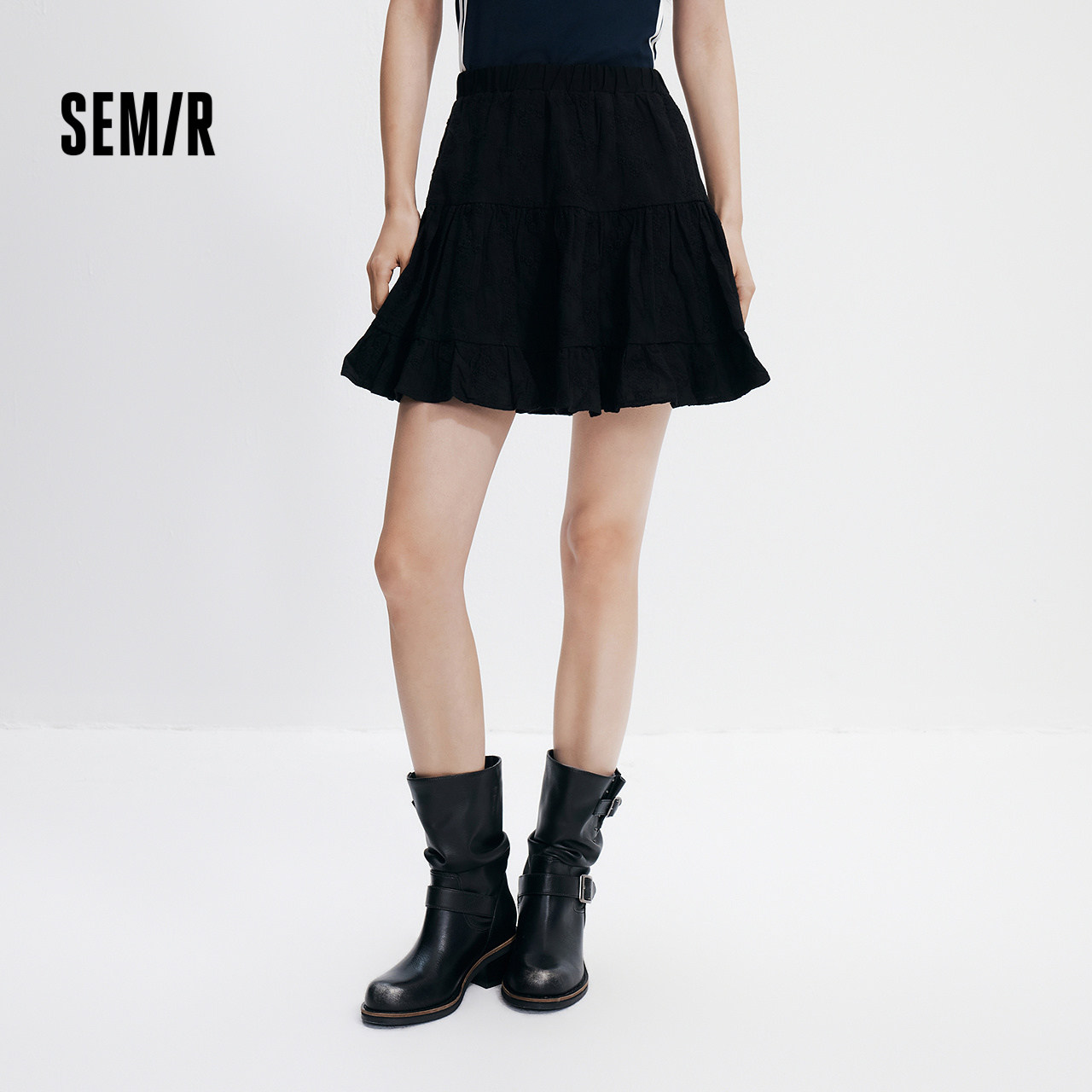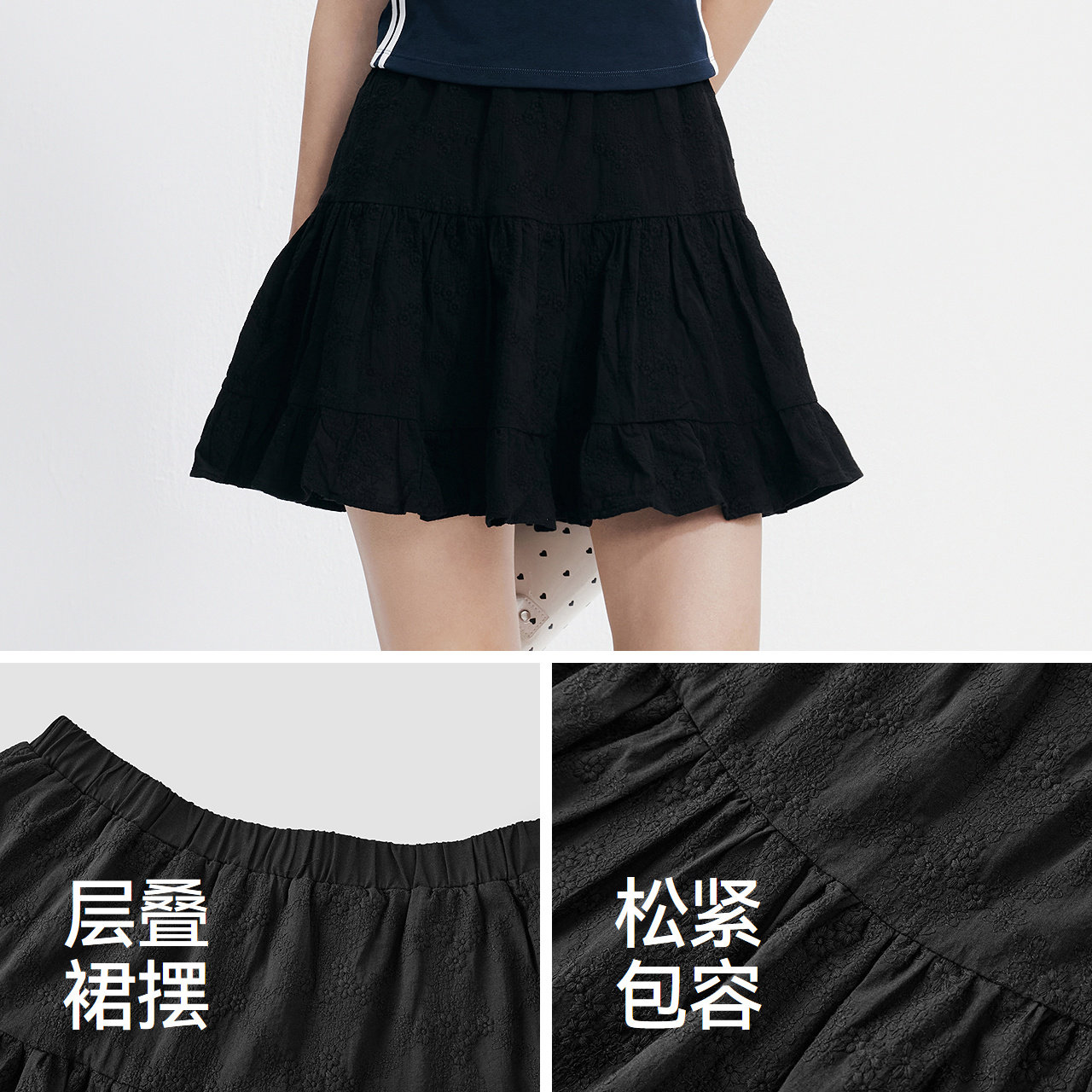 森马半身裙女夏重工绣花A字短裙松紧腰设计感浪漫俏皮可爱蛋糕裙