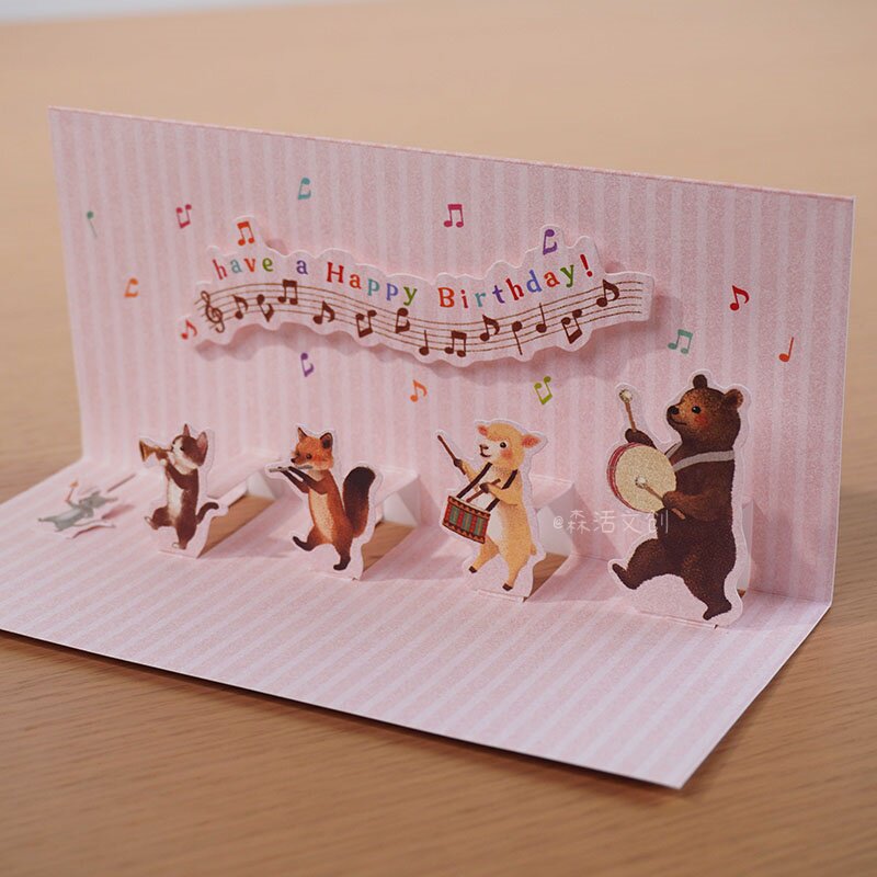 动物生日万用卡合集|猫咪送花松鼠气球老鼠音乐立体贺卡台湾创意