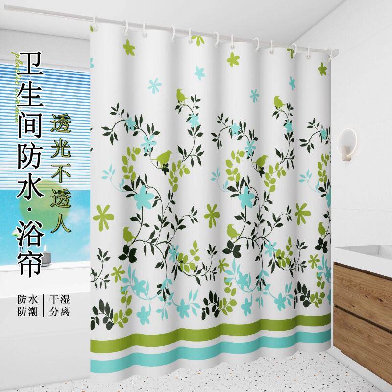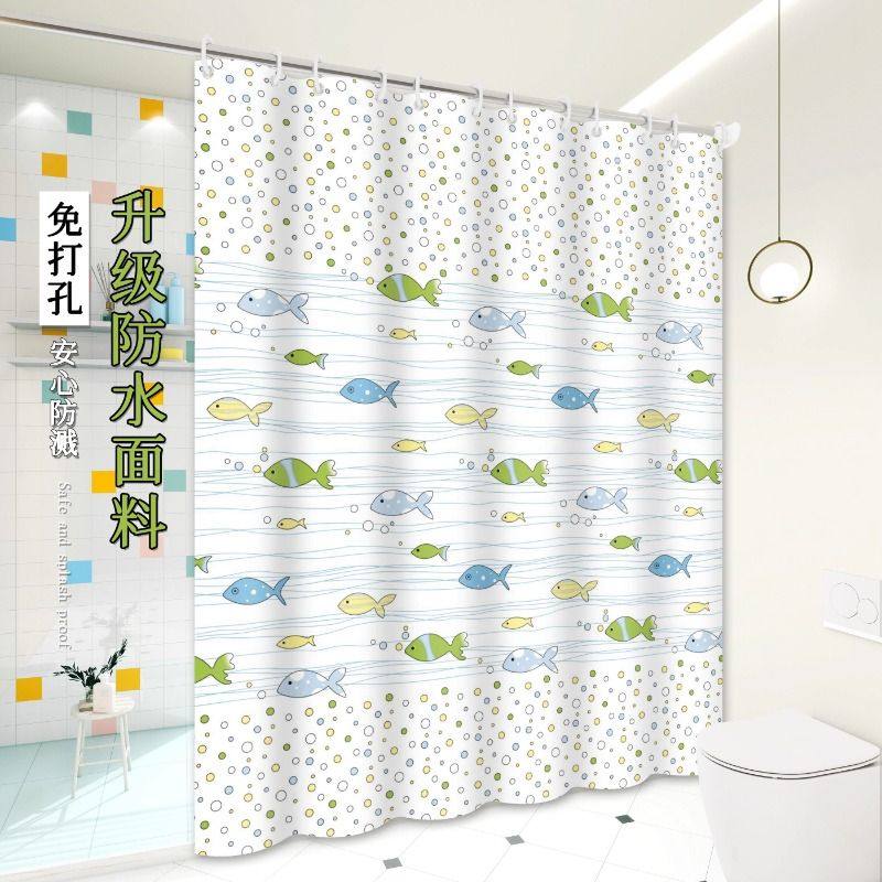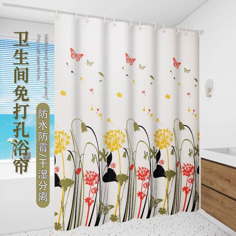 卫生间浴帘洗澡套装免打孔防水防霉帘子浴室挂帘隔断帘透明挡水