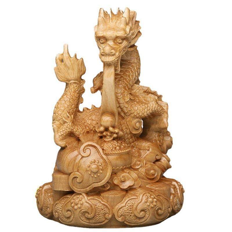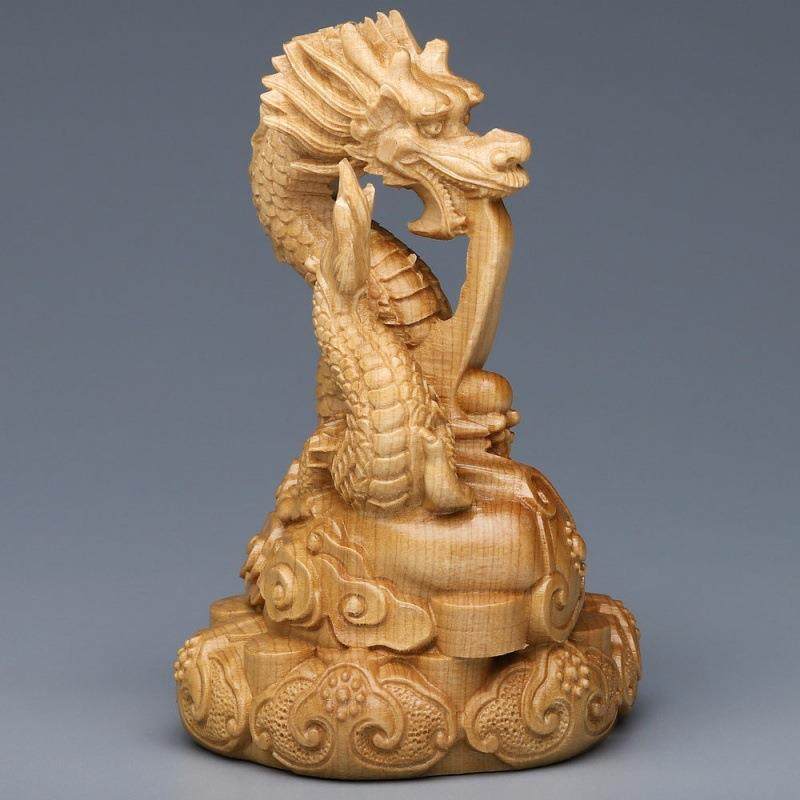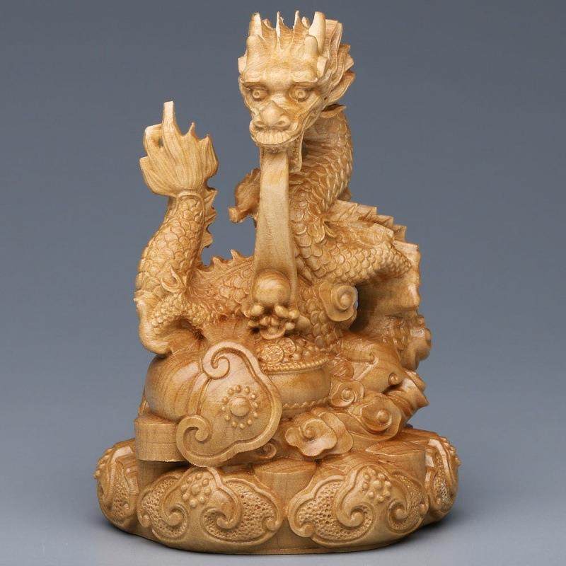 崖柏木雕盘龙家居摆件 实木精雕祥龙福禄车载装饰工艺品活动