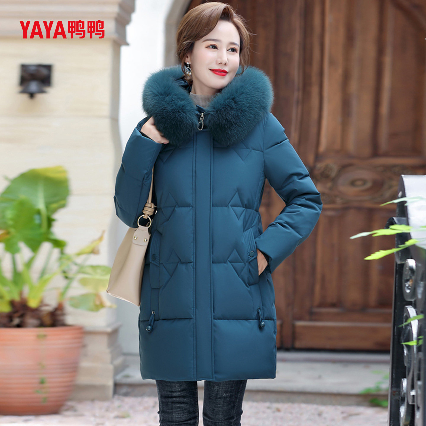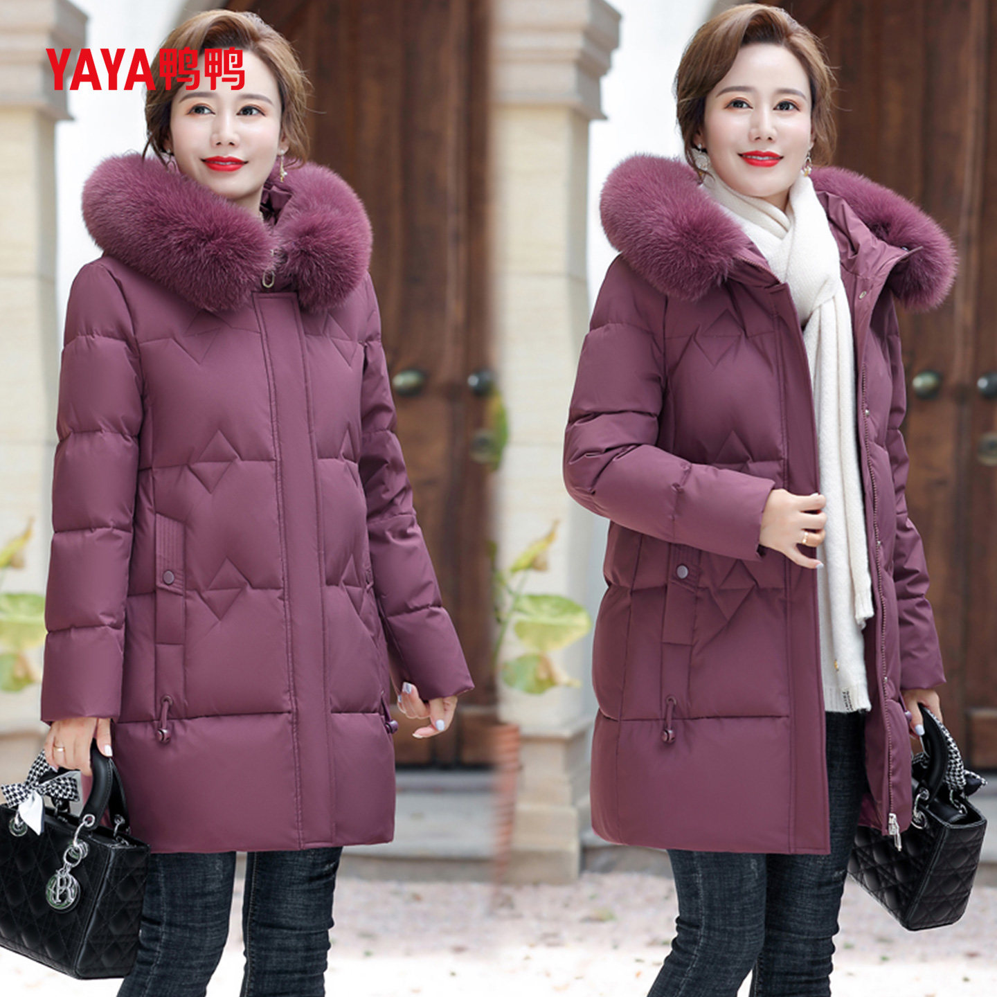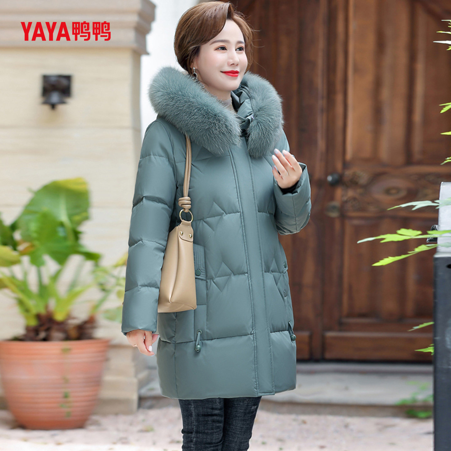 YAYA鸭鸭妈妈款羽绒服2025新款中年女款中长款中老年冬装外套女