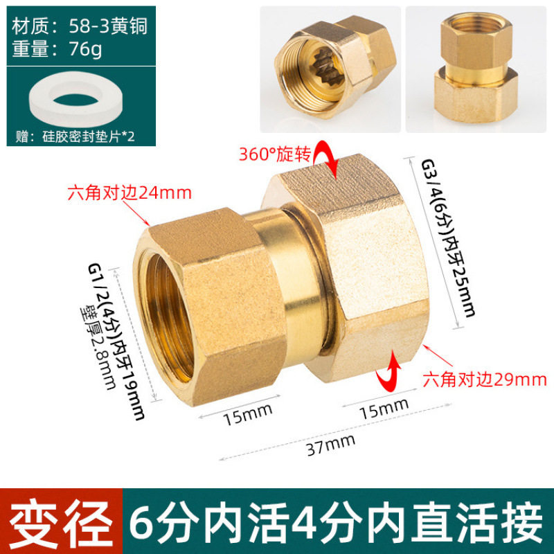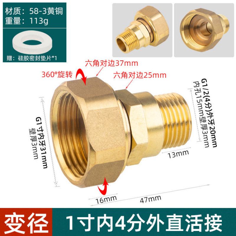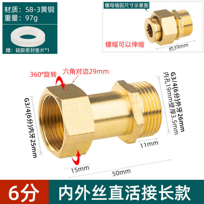 黄铜活接水管内外丝4水暖配件家用6分1.2寸延长全铜活动直通接头