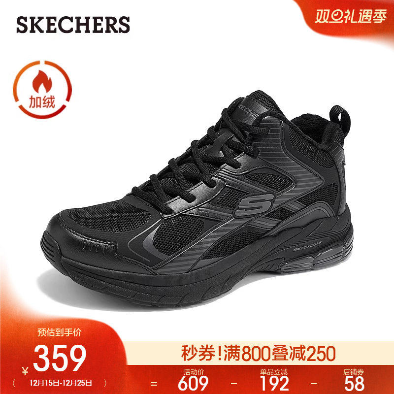 斯凯奇2025冬季新款男子加绒休闲运动鞋厚底缓震时尚百搭老爹鞋