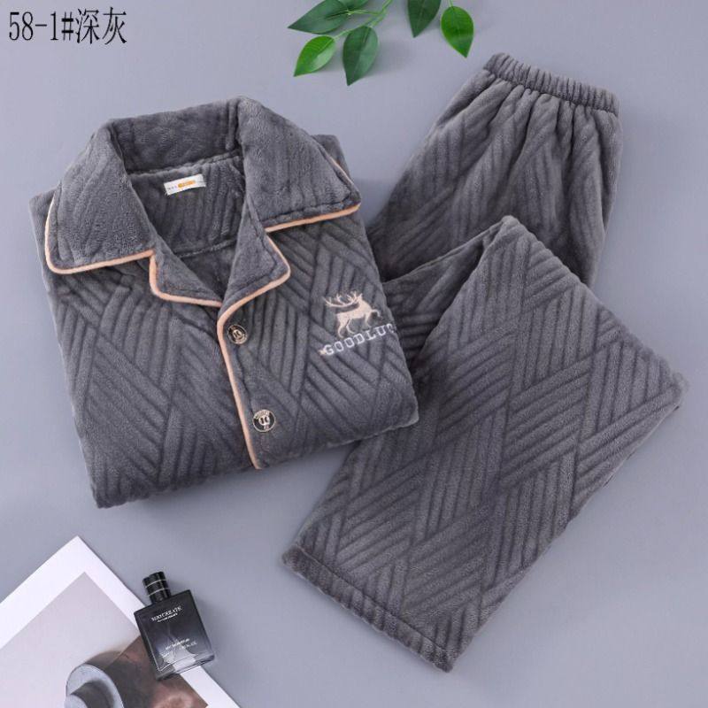 珊瑚绒睡衣男士加绒加厚秋冬季法兰绒保暖中青年家居服可外穿套装