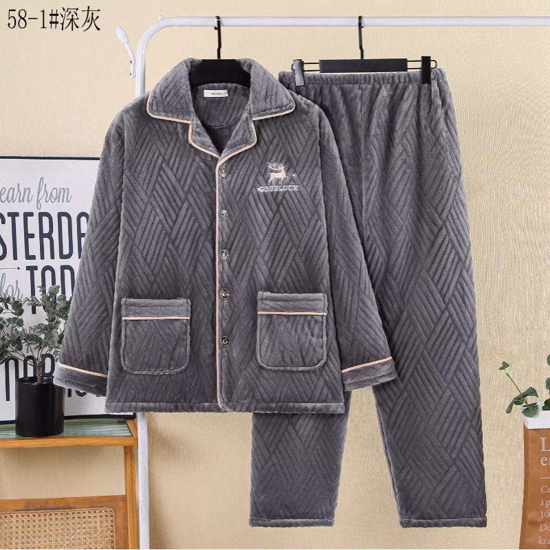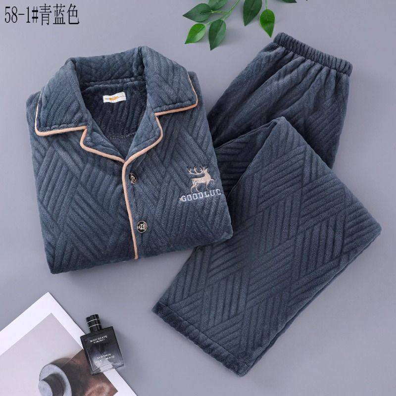 冬季珊瑚绒男士睡衣三层夹棉加厚加绒法兰绒秋冬款家居服保暖套装